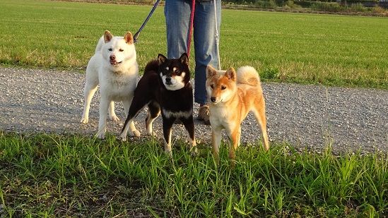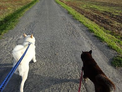 ロードワークを終えて結も一緒にみんなで夕方の散歩道をのんびりと進んで行きます。