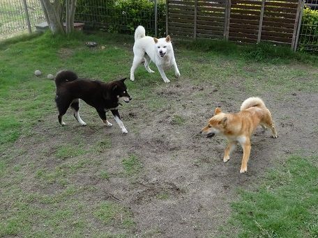 3匹の遊びがひと段落したところで白黒コンビのロードワークへ出発!