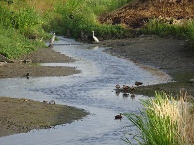 昨日の大雨時には増水していた川面も今日はすっかり普段の落ち着きを取り戻し、浅瀬