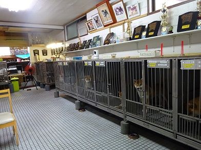 到着して犬舎へとお伺いさせて頂くと、整然と並んだゲージには展覧会ではお馴染みの