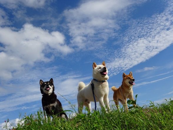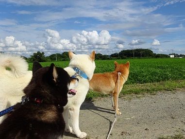 コース途中でそんな夏空を背景に3匹の写真を撮ってみました。