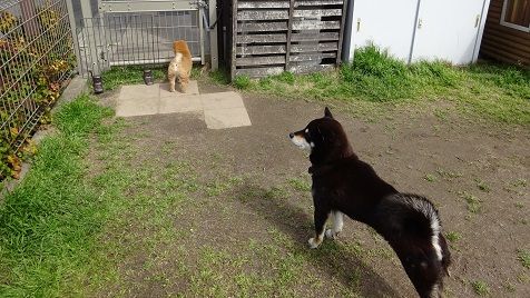 こちらはプロレスごっこがひと段落して、外の様子を興味深げに眺める様子を見せて