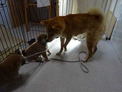 そんな状況を見かねたナナ母ちゃんが2匹の間に入り、いったん遊びを中断させるべく、