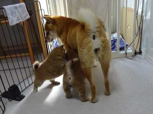 見せない長男坊。そんな息子を噛み噛みしながらこの後、ナナ母ちゃんが軽いお灸を据え