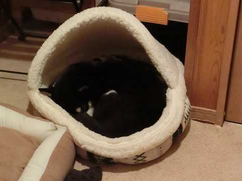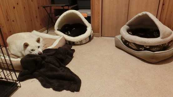 ナナのお産部屋にマリの愛用ベッドをすっかり置きっぱなしにしてしまっていたことに