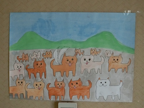 こちらはその前日、ご家族そろってご挨拶に見えた際に、ちびっ子から頂いた犬達の絵。