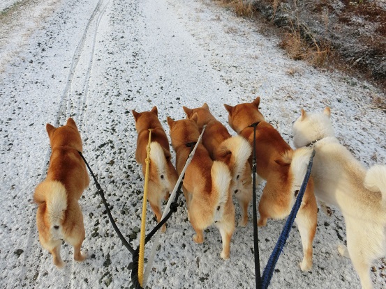 持ち前の好奇心の強さと先輩犬達のレクチャーも功を奏しているのでしょうか?すっかり雪道にも慣れ、ハル母ちゃんや結婆ちゃん達と肩を並べながらおしゃべりでも楽しむ様子を見せていた未来。