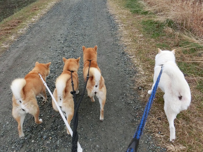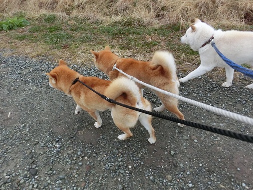 この日の朝はロードワークを終えた結ナナハルに最終発となったナツを加えて朝の散歩へと出掛けてみました。