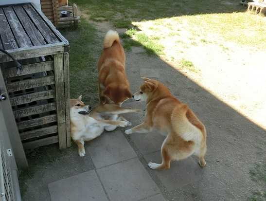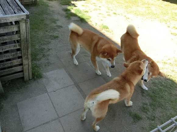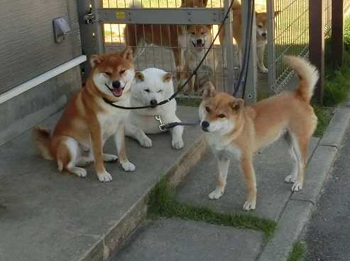 こちらはこの日我が家の朝練に参加した武蔵も一緒にナツ爺とハルのスリーショット。