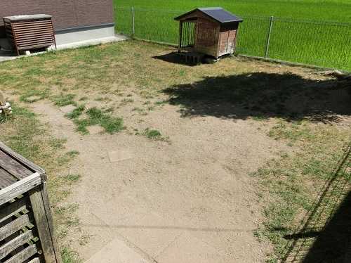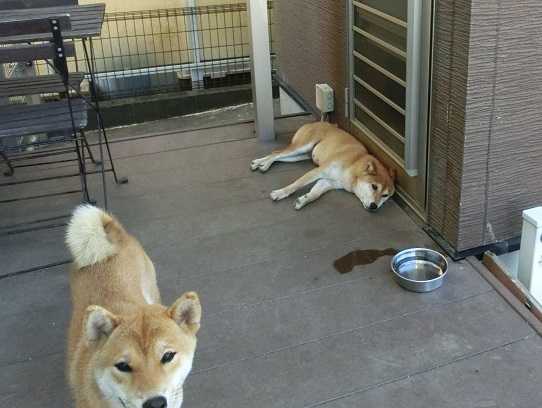 朝食を終えて面々が庭守に就く頃には温度計が既に30℃を指し、早々から犬達にとっての暑さとの闘いがスタートしている様に感じられてしまいます。(泣)