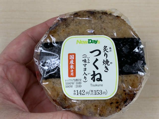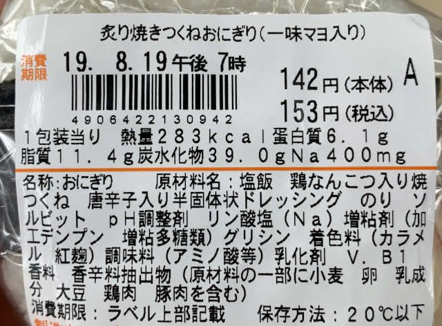 そして”炙り焼きつくね一味マヨ入り”です。つくねのおにぎりは前にも食べたことがあると思いますが、軟骨のコリっとした食感が美味しいですね。