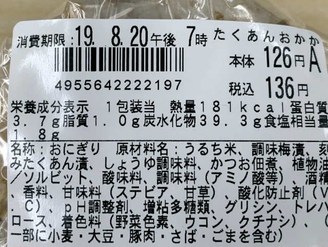そして8/22分です。価格を抑えた組み合わせ カリカリ梅とたくあんおかかは初めて食べました。
