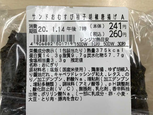 サンドおむすびの柚子胡椒唐揚げは最初に胡椒がガツンときて、その後にゆずがふんわり薫ってくる感じで、美味しかったです。