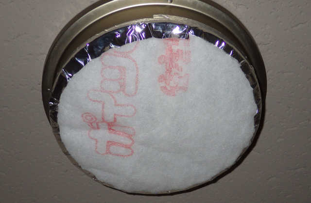 仕方なく侵入防止用として換気扇の吸気口へフィルターを取り付けました。1枚目が室内にある吸気口のハウジングで、隙間からフィルターが見えますか?