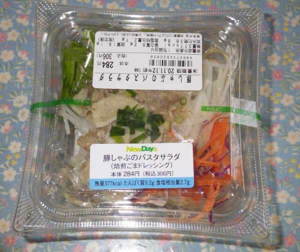 そして"豚しゃぶのパスタサラダ(焙煎ごまドレッシング)”です。以前にもの凄く気に入って食べていた”豚しゃぶのパスタサラダ(ごまポン酢ドレ)”の後継品かな? ドレッシングは少し変わったかなぁ。