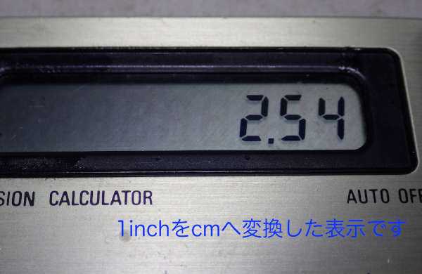 そして1インチ → cmへ換算したところで、ちゃんと2.54と表示されています。電池:LR43×2がへたっているようなので、今度調達してきます。