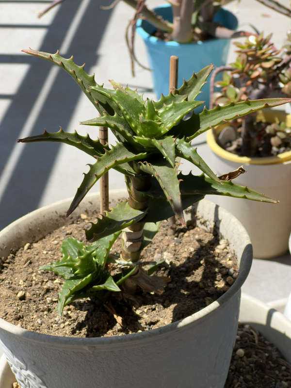 去年買ってきてベランダに置いているキダチアロエは、まだ少し赤いけど大きくはなった