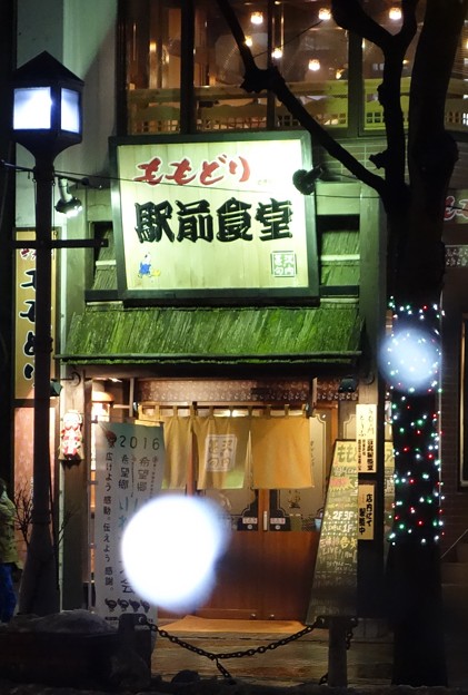 今年初めてのももどり駅前食堂です。店内入るなり大将より、「あけましておめでとうございます」そのあと、店員さんからもご挨拶です。良い気持ちでいつものようにボトルキープしてる、釜石浜千鳥の纜(ともづな)でお湯割りいただきます。さて、お湯割り飲んでたら、一気に注文してた料理が並びました。まずは、自家製豆腐の揚げ出し豆腐。とてシルキーな豆腐がアツアツで美味しいです。そして、本日のおすすめ、とてもきれいに盛られたイカ刺し。プリプリのイカが噛めば甘味がじわっときます。これはとてもいい今宵の肴となりました。この2品で十分お湯割り飲めました。この2品が尽きたところで、さてと、シメに久しぶりにラーメンを注文。「すぐいきますけどいいですか」と大将。お湯割りもう一杯飲みながら待ちましょか、と思っていたら、カップラーメン並みに来ました。塩中華そば。細麺だから、あっという間に出来ちゃうんですね。いやいや今度日中に来た時には立ち食いそばの代わりに食べに来ようかな。チャーシューはももどり駅前食堂よろしく、ローストチキンです。これがまたじわっと味がして食べ応えもあり、アッサリとしていながらコクのあるスープが良いです。するするっとあっという間に完食です。この晩もお腹一杯でほろ酔い加減でお店を出る事になりました。また今年もたくさんお世話になる事であろう、盛岡駅前のももどり駅前食堂なのでした。 お付き合いありがとうございます。こんなくだらないブログですが、よろしければ応援クリックをいかがでしょう。のランキングがちょっとあがりますのでよろしくです。