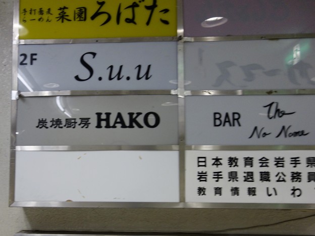 盛岡菜園にある炭焼厨房HAKO。友人が営業してるホルモン焼きの店。友人が店長で、もうひとり店長の友人、料理人の2人で切り盛りしてます。まずは生ビール。お通しのキムチは食べ放題。この日はお客さんが他にまだ来てませんでした。そしてホルモン3種盛り。メニューから3種類選んで一皿に。一品の量が少なめに3種類盛られて、価格もちょっとお安めに。「今日はちょっとサービスしました」と、料理人。「それは古い肉の在庫が余ってんの?」と聞くと、「じゃぁ、食うな」と友人の店長。こんなしょうもない会話をしながら炭火に乗せて焼きます。店長に、「ホント、ヘタクソだな」と言われながら、煙モウモウさせながら、脂の乗ったシマチョウとギアラを焼きます。焦げ目がついて身がぷっくりとしてきたら食べ頃。ホルモンはしっかり焼きましょう。それをレモン汁に付けて食べると、ホント旨いです。もうひとつ、ハチノスという部位をカリカリに焼いてビール飲みながら、3種盛りを食べ尽くしたところで、シメの盛岡冷麺。コチラの冷麺、スープがとろっとろ。コラーゲンたっぷりで独特の麺によく絡んで旨いです。自慢のスープなんで、辛味は別盛で提供されます。まずは辛味、調味料なしでいただくといいでしょう。そして、辛口の好きな自分は辛味を全部入れて一気に食べちゃいました。このあと、世間話しながら過ごしてると、やっとお客さんが来店し始めました。ここから、深夜になって飲み帰りにお姉さん同伴でお客さんがドンドン入り始めるようです。ということで、自分は腹一杯になって店を出ました。テレビの取材依頼も来てるそうですが、「めんどくさいし、一見のお客が増えて嫌だから」常連さんが増えてきて、やっと経営が安定したから、2人でやってるし忙しすぎるのを嫌がり取材NGだそうで。それでも常連さんに頼まれ、地元の雑誌にはちらほら載り始めてます。ホルモン焼が好きな方は寄ってみてはいかがでしょう。 お付き合いありがとうございます。こんなくだらないブログですが、よろしければ応援クリックをいかがでしょう。のランキングがちょっとあがりますのでよろしくです。