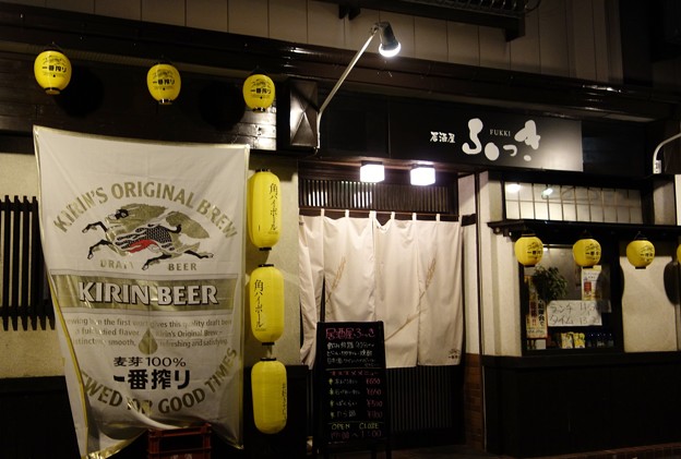 時々行く、住宅街にある居酒屋ふっき。いつものように、飲み放題(90分)で、最初に遠野産ホップのキリン一番搾り。グイッと飲み干したところで、お通しが来ました。生ハム巻き。2杯めはジンジャーハイ。さて、今宵の肴は、焼トンセット。バラ、ロース、モモ。肉厚でジューシーな串焼きは、とても食べ応えあり。そして、白身の刺身。魚の名前、忘れました・・・(^^;)身がプリプリで甘味があって旨かった。ビールとジンジャーハイを繰り返しお替りしてたところで、ちょっと気分転換でレモンサワー。そろそろ飲み放題ラストオーダーとなったところで、緑茶割りを注文して、シメの料理、そうめんチャンプルーを。焼うどんならぬ焼ソーメンというのもなかなか旨いです。野菜タップリで意外に食べ応えありました。ということで、タイムオーバーになったところで会計済まして店を出ました。雪も降って寒さ厳しく、住宅街の居酒屋はさすがにお客もまばらで、店員さんもこの晩は一人で切り盛り。街中の居酒屋は新年会とかで結構盛り上がっていたようなので、お店には悪いですけど、静かにたくさん飲めて良かったです。 お付き合いありがとうございます。こんなくだらないブログですが、よろしければ応援クリックをいかがでしょう。のランキングがちょっとあがりますのでよろしくです。