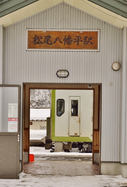 先日、雪降る中、JR花輪線の無人駅、松尾八幡平駅に行って来ました。ちょうど普通列車が到着し、学生一人降ろして出発したところでした。駅のホームに入ってみると、JRの職員さん達が、ホームの雪かきをしていました。除雪車も来てました。さて、次の列車はと時刻表を見てみると、およそ2時間後に上下線同時に到着予定。2時間も暖房もない真冬の無人駅で待ってるのは辛いので、安比高原に向かい温泉入って来て、そしてまた列車到着30分ほど前に駅にやって来ました。ここで突然、時刻表にない列車が。よく見ると試運転の表示。数名のとても若い男女の車掌さん達がメモしながら乗ってたので、どうやら研修してたようです。数分後折り返して戻っていきました。待合室には、融雪剤の袋が積まれていました。さて、外はかなり強い吹雪が・・・。クルマの温度計はマイナス1℃とこの時期、この地域にしては、とても暖かい気温なんですが、やはりただ待っている二はかなり寒く感じます。温泉の影響でカラダが温まっているのが幸いでした。そして外も薄暗くなって来た頃、列車を待っていると、踏切の音が鳴り始めて、安比方面から吹雪の中、列車がやって来ました。到着するも乗降客なし。単線のため、反対側から来る列車の待機です。そしてすぐに反対側から列車が来ました。こちらは一人のお客さんが降りてきました。そして数秒後すぐに出発。ほぼ同時にどちらの列車も出発して行ったのでした。東北有数の豪雪地帯安代八幡平を越えて走る、JR花輪線。東北自動車道が雪の影響で止まっても、この花輪線はなかなか運休することなく、年に運休はわずかです。常に除雪してこんな吹雪でも正確な時間で運行している花輪線なのでした。 お付き合いありがとうございます。こんなくだらないブログですが、よろしければ応援クリックをいかがでしょう。のランキングがちょっとあがりますのでよろしくです。