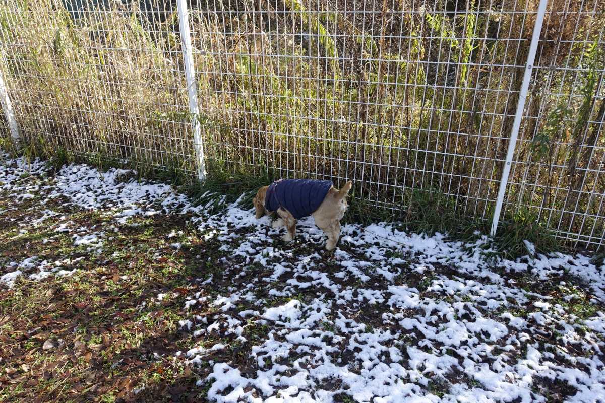 昨夜の雪がまだ残ってるところを