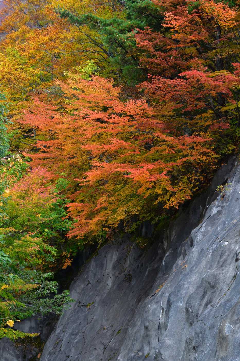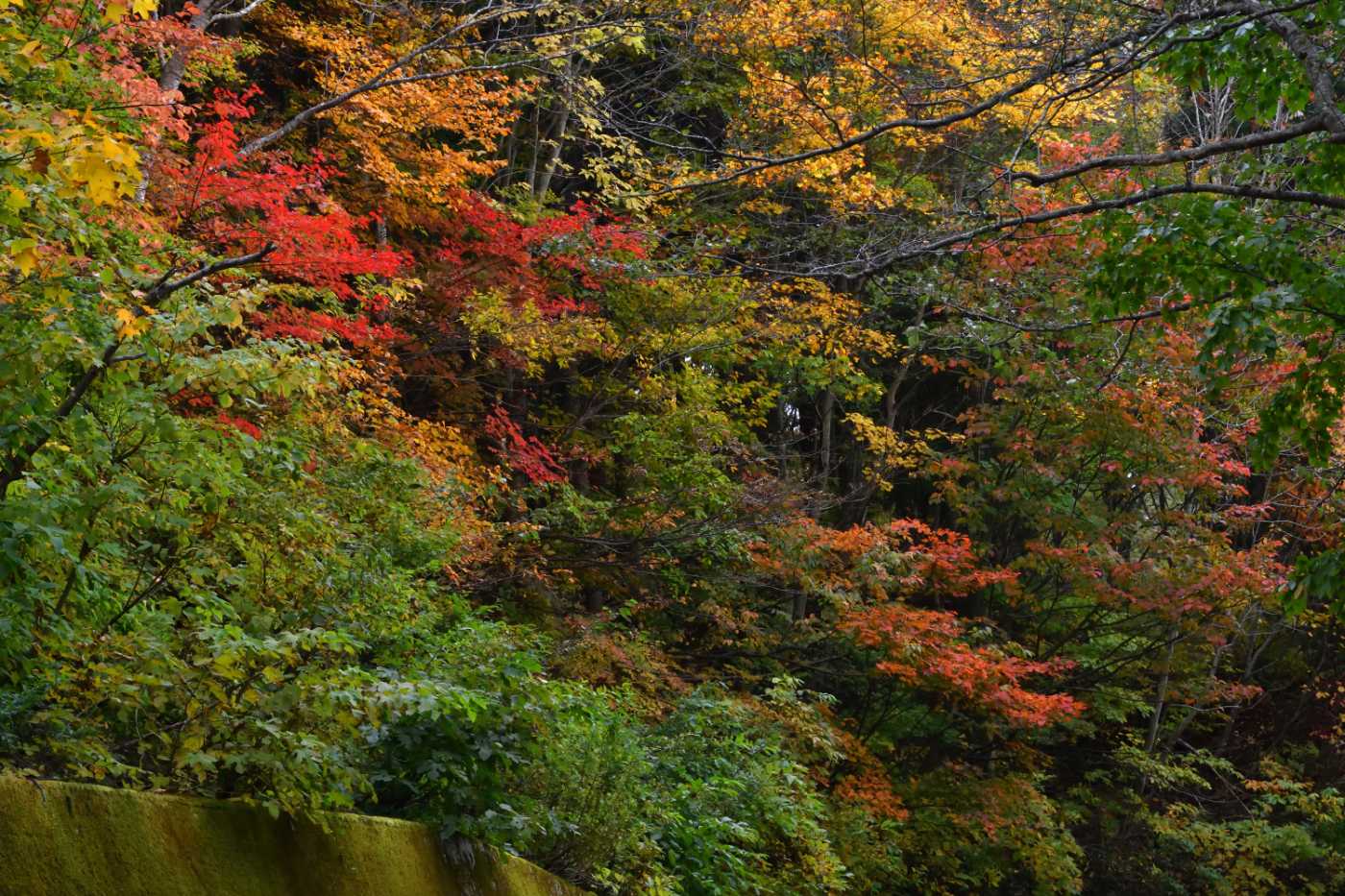 その待避所にクルマを寄せて、道沿いの紅葉撮りました。