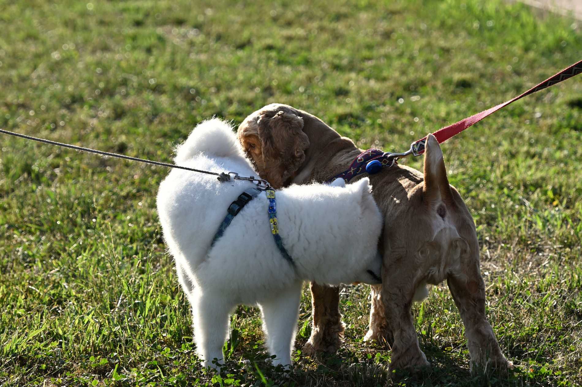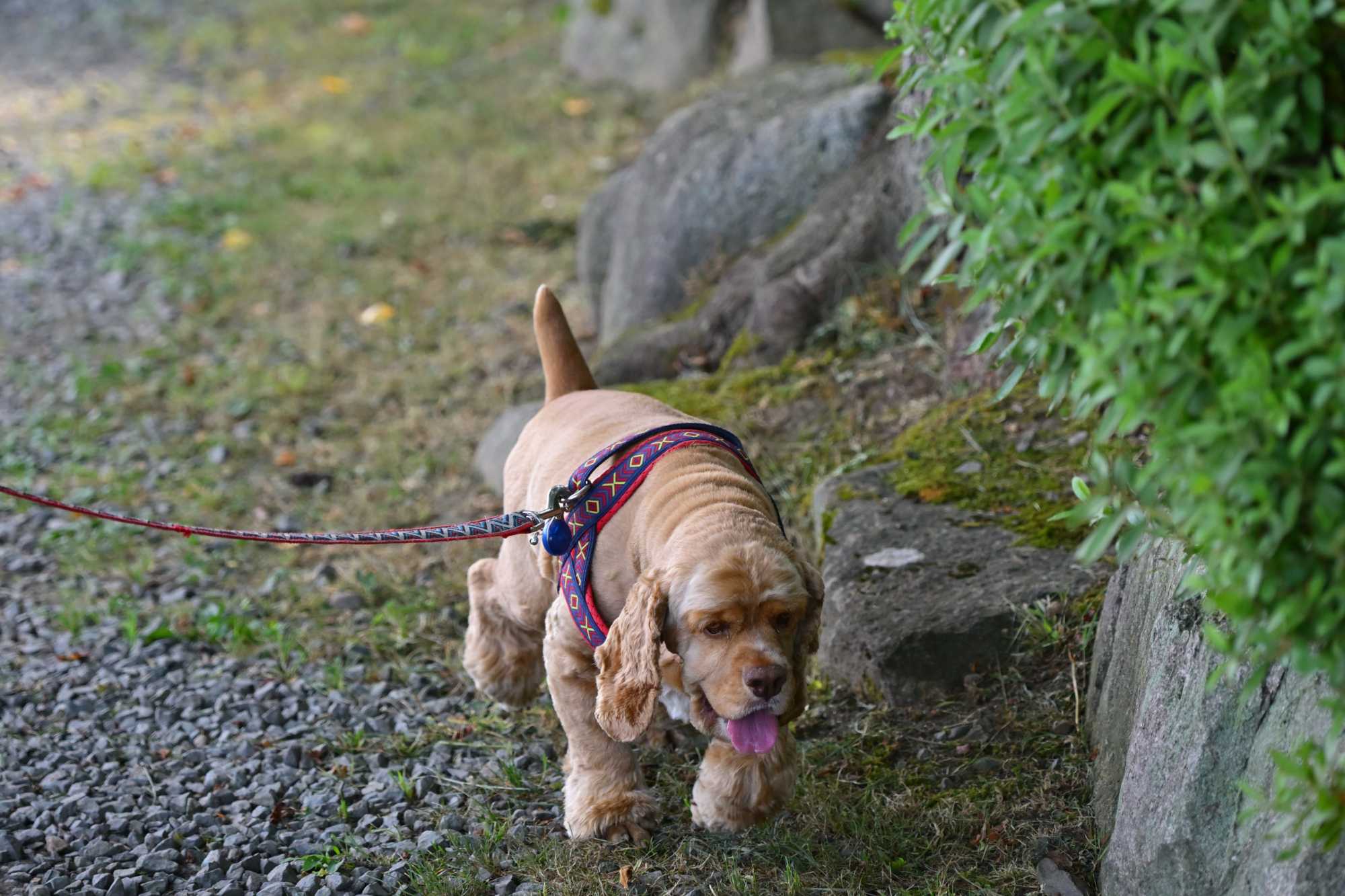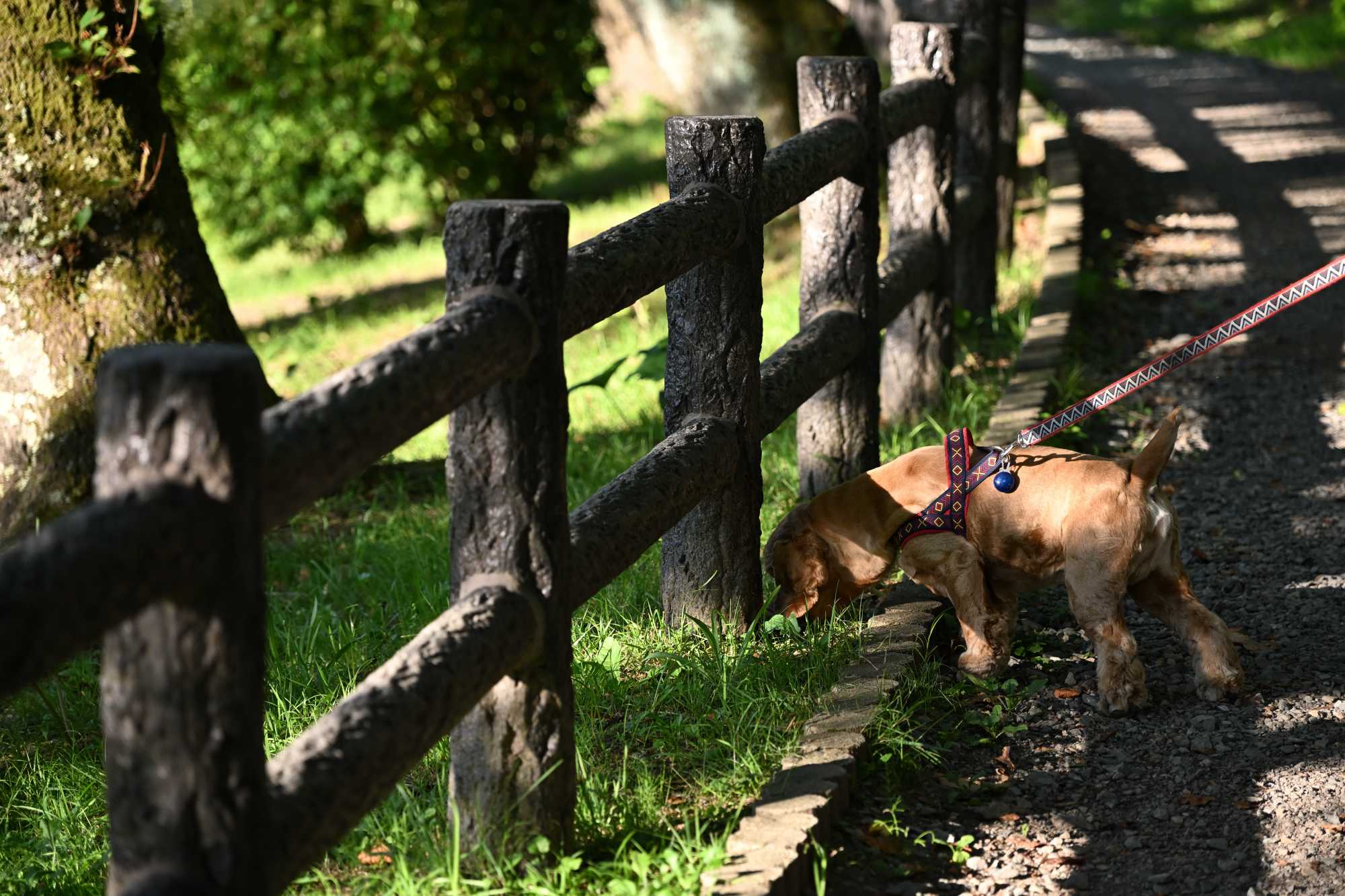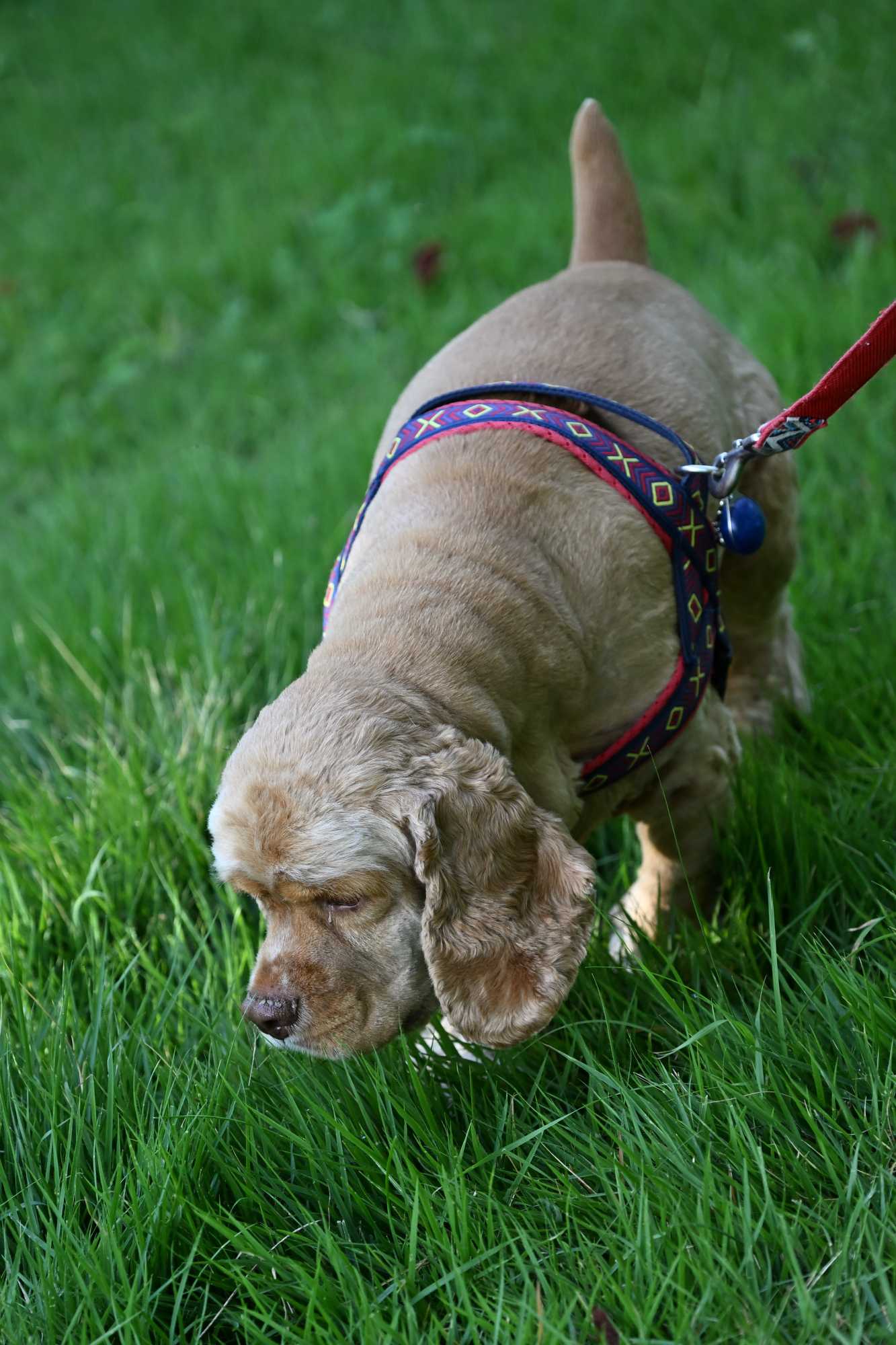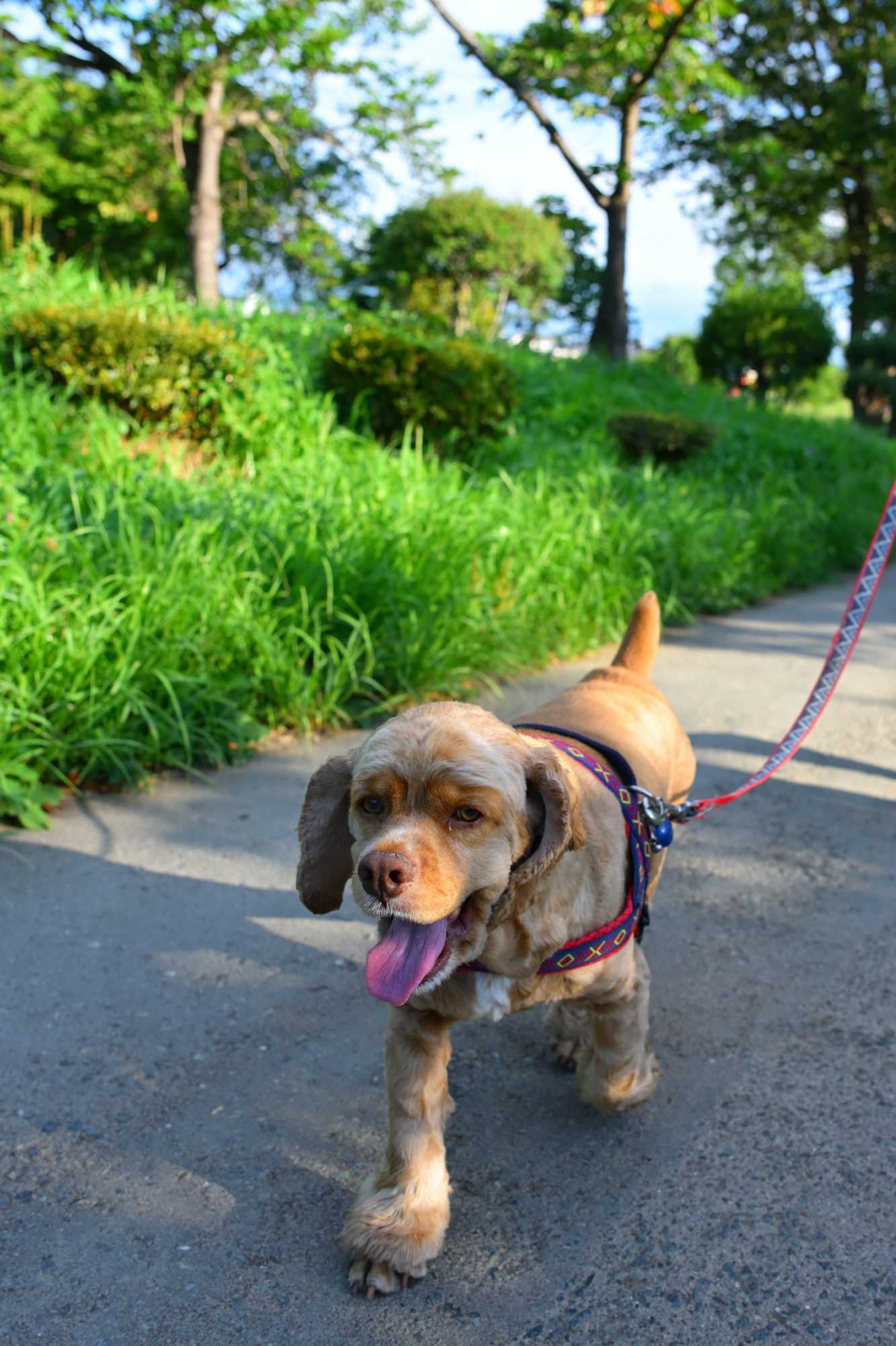 芝生の匂いを嗅ぎながらのんびり歩くジュリオです。