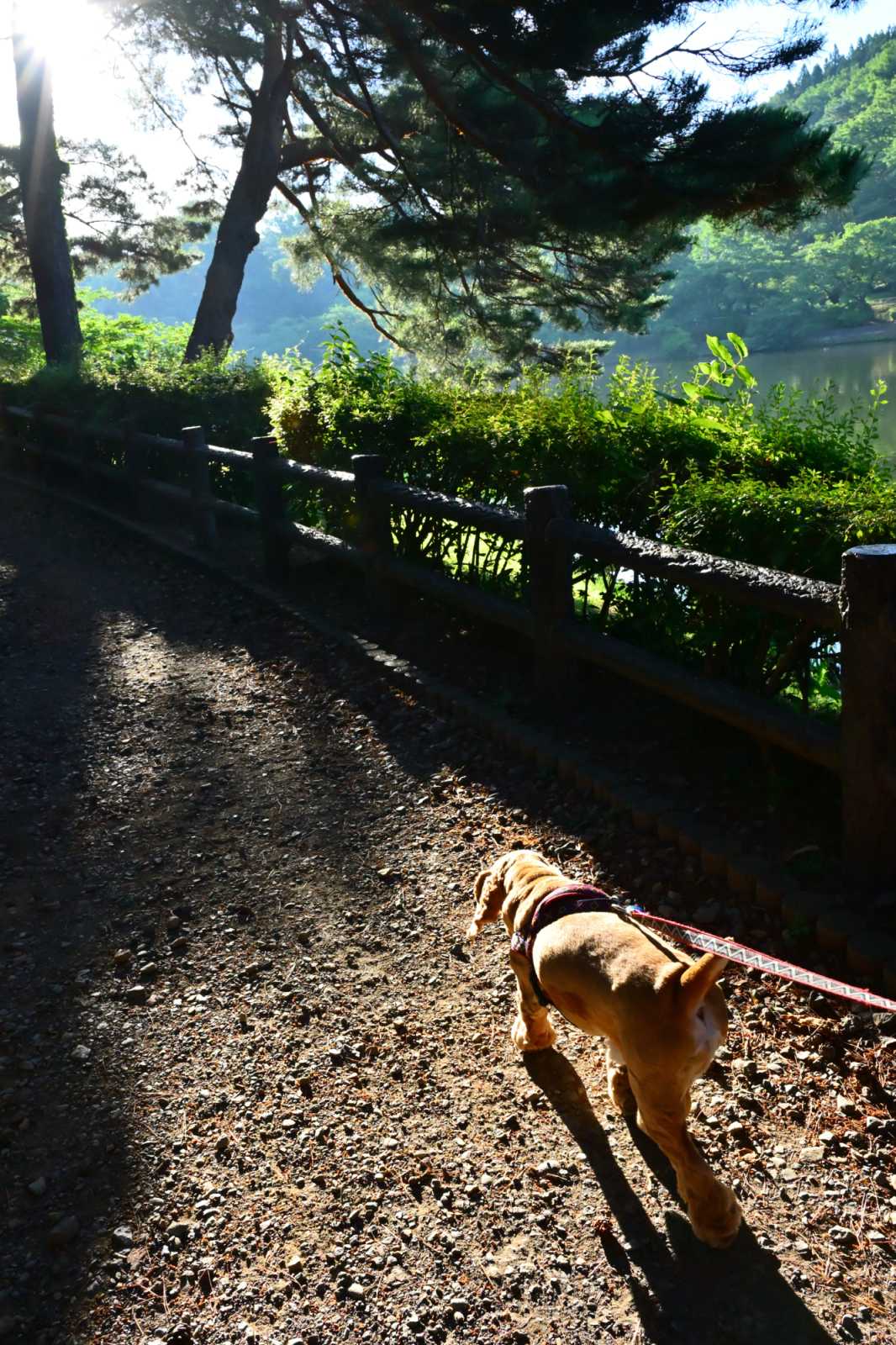 ジュリオも暑くなってきたようで、日陰を選んで歩いてます。