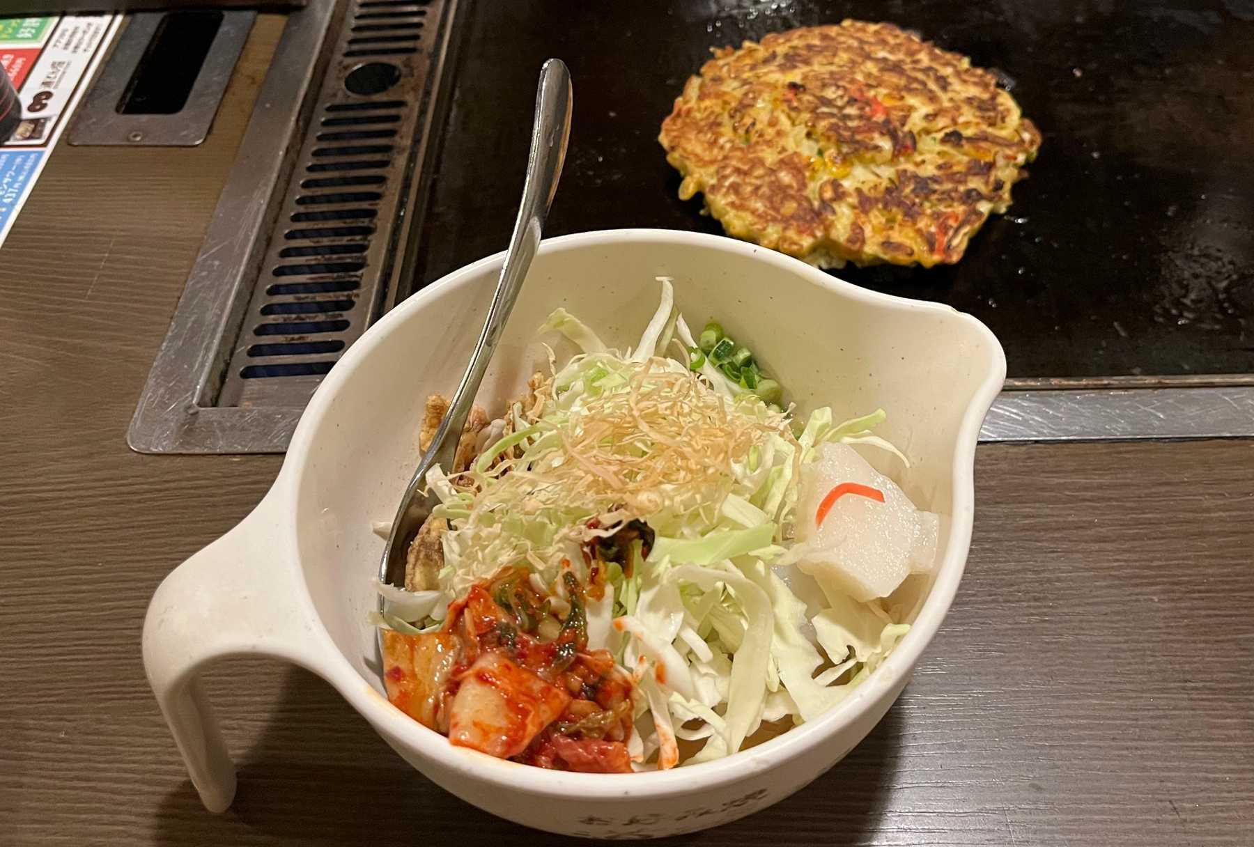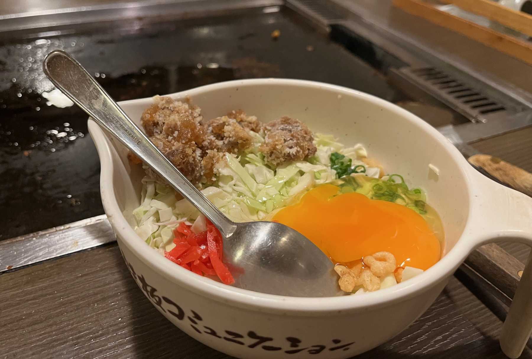 お子に宮木2品食べたら、もんじゃ焼きに挑戦。
