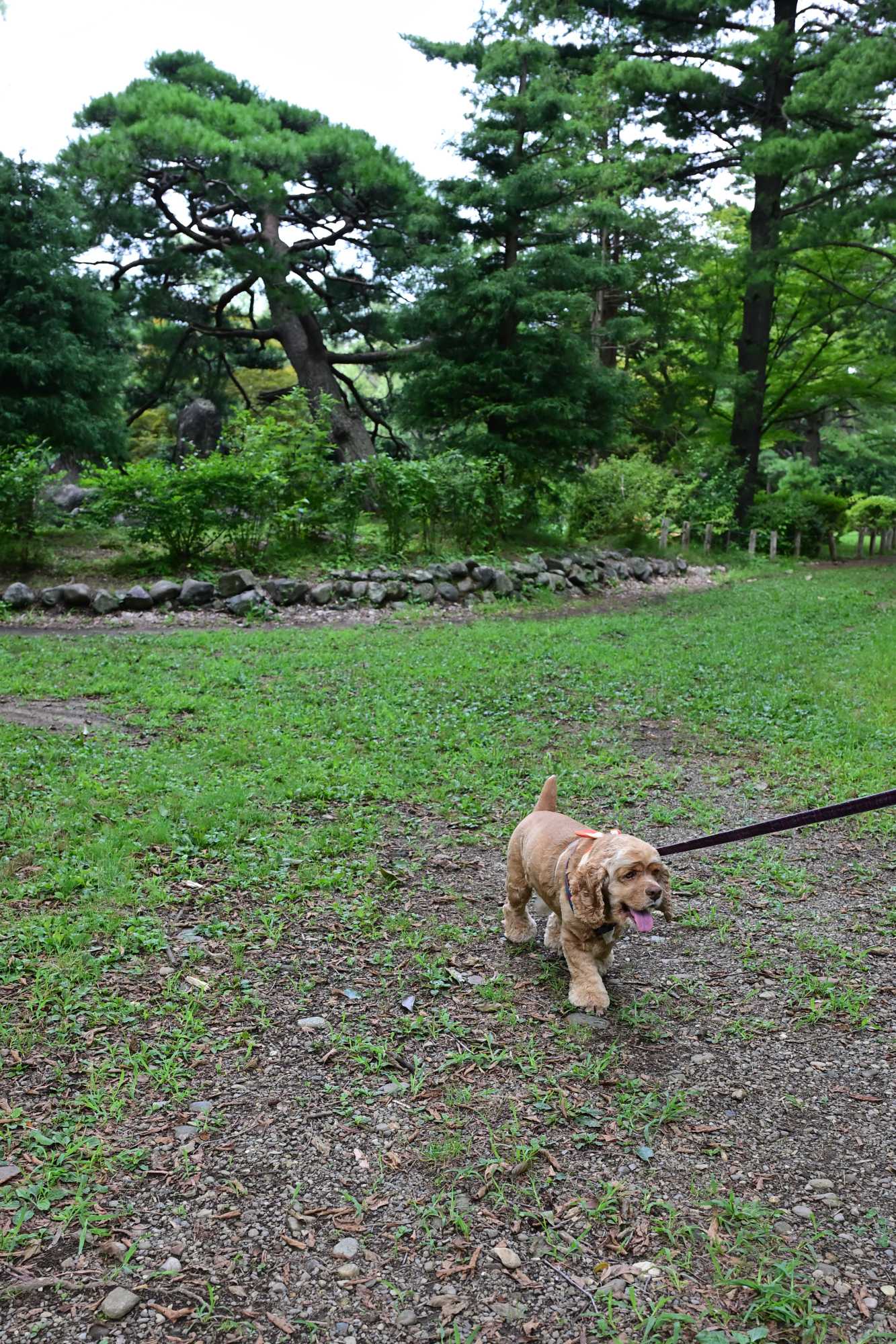公園内の日本庭園を歩いて満足げ。