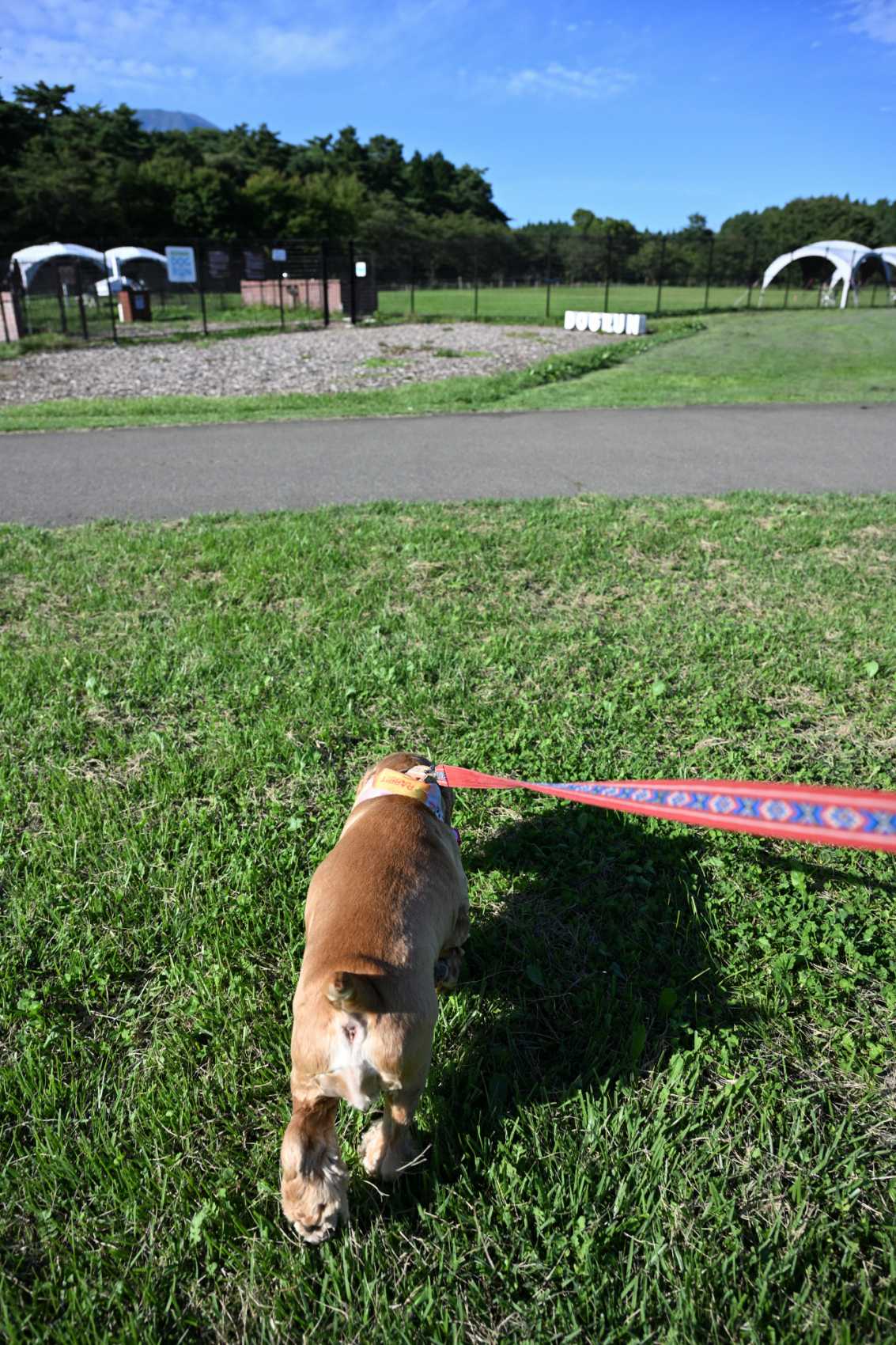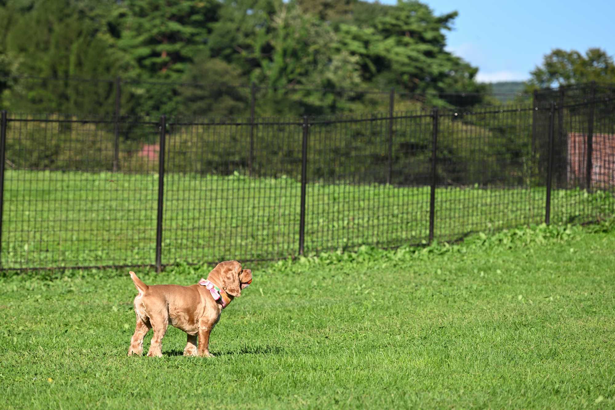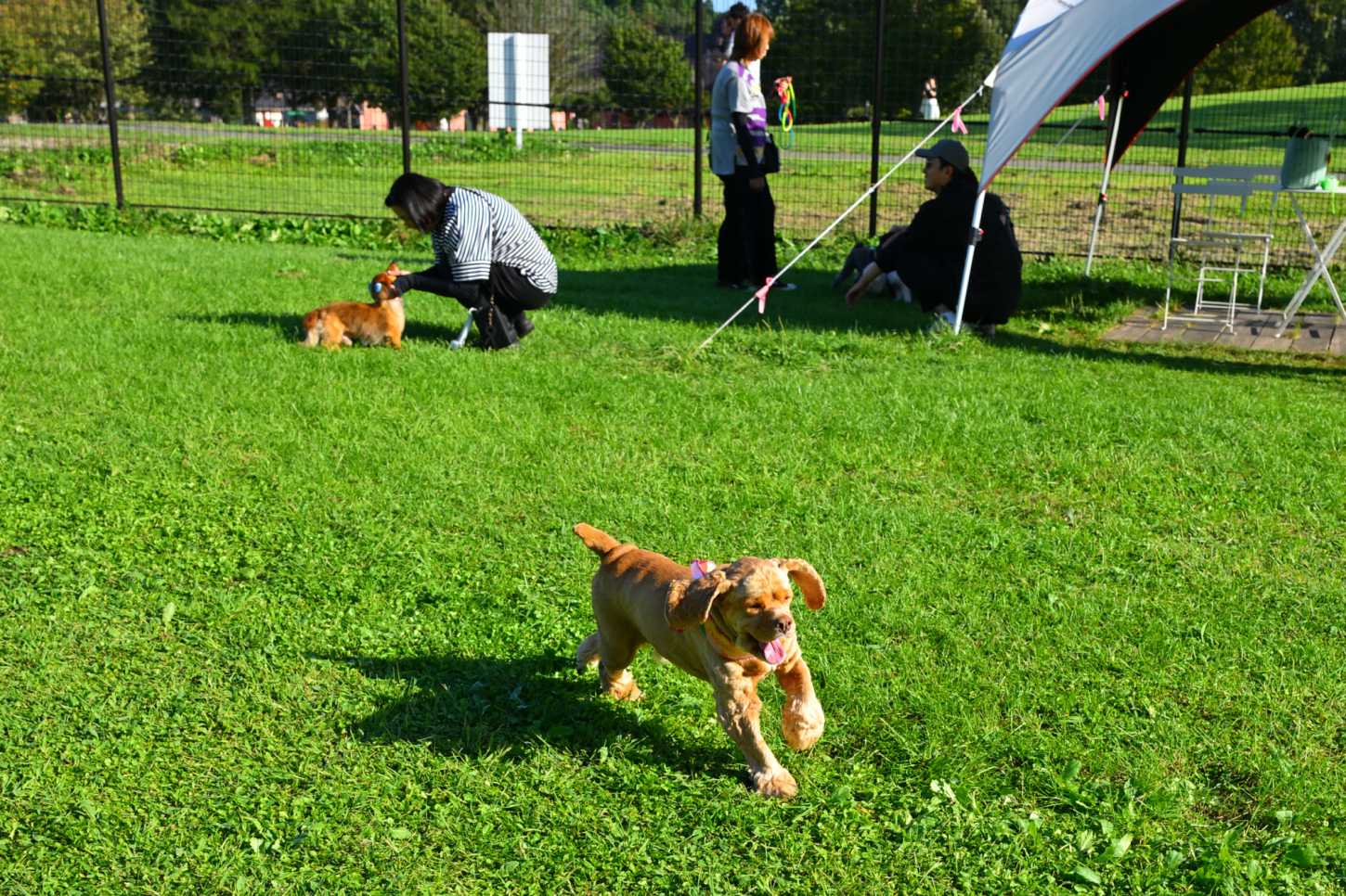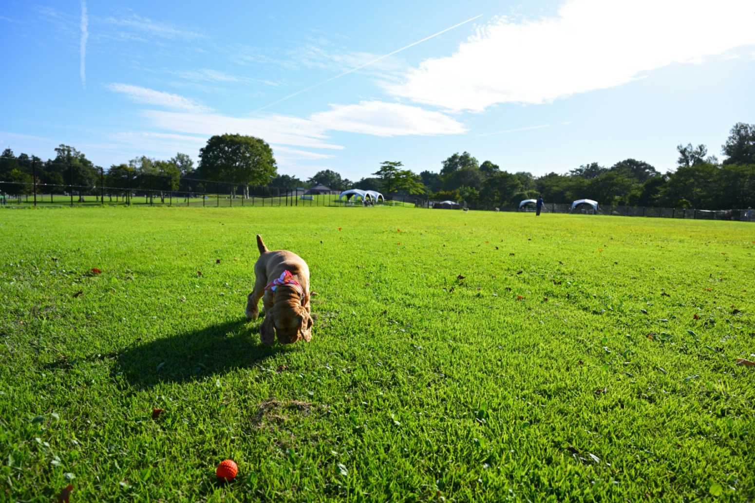 広い広場を突っ切るようにドッグランへまっしぐらのジュリオ。