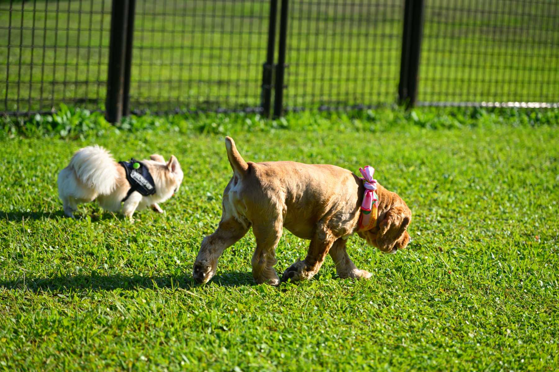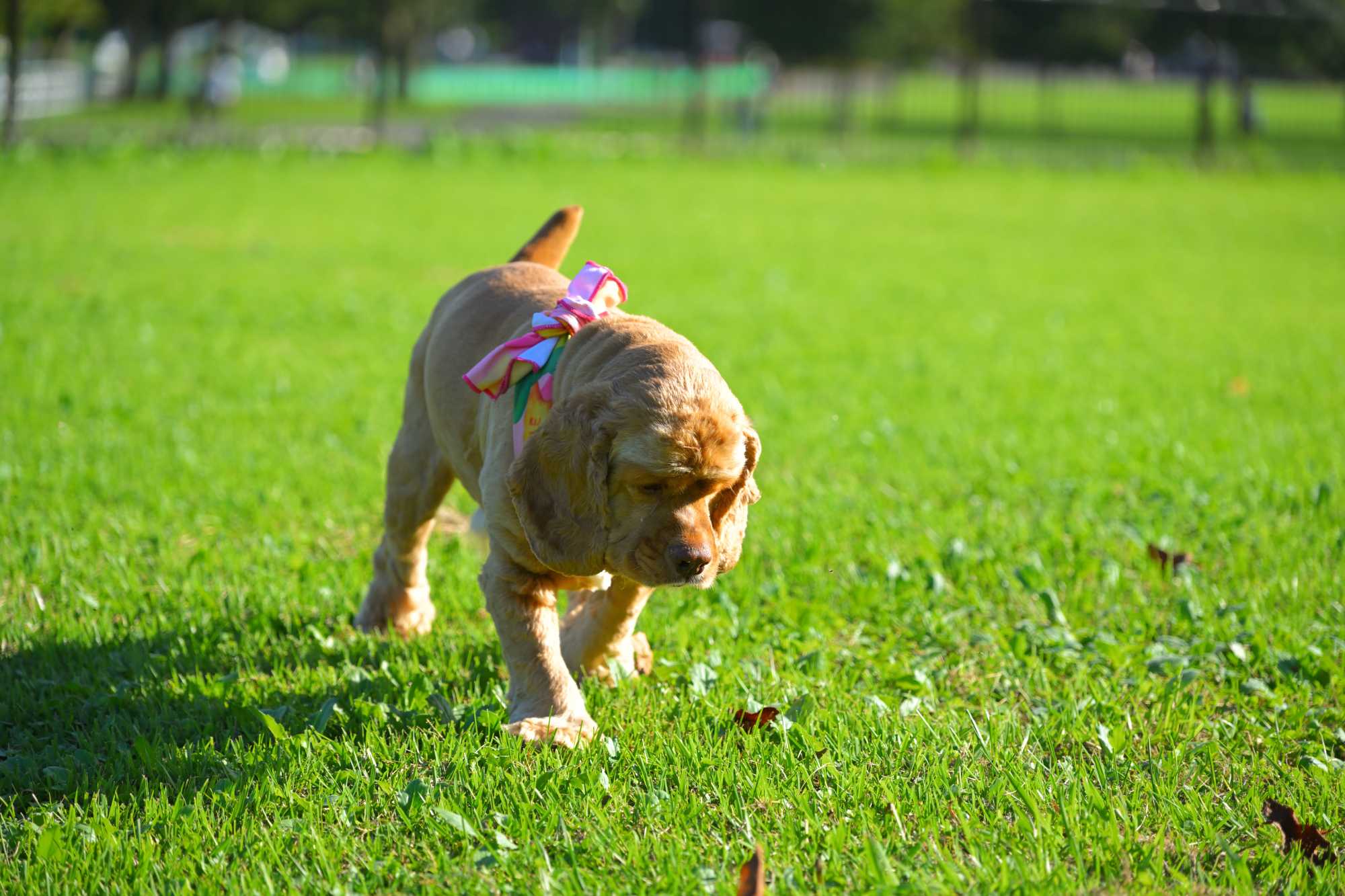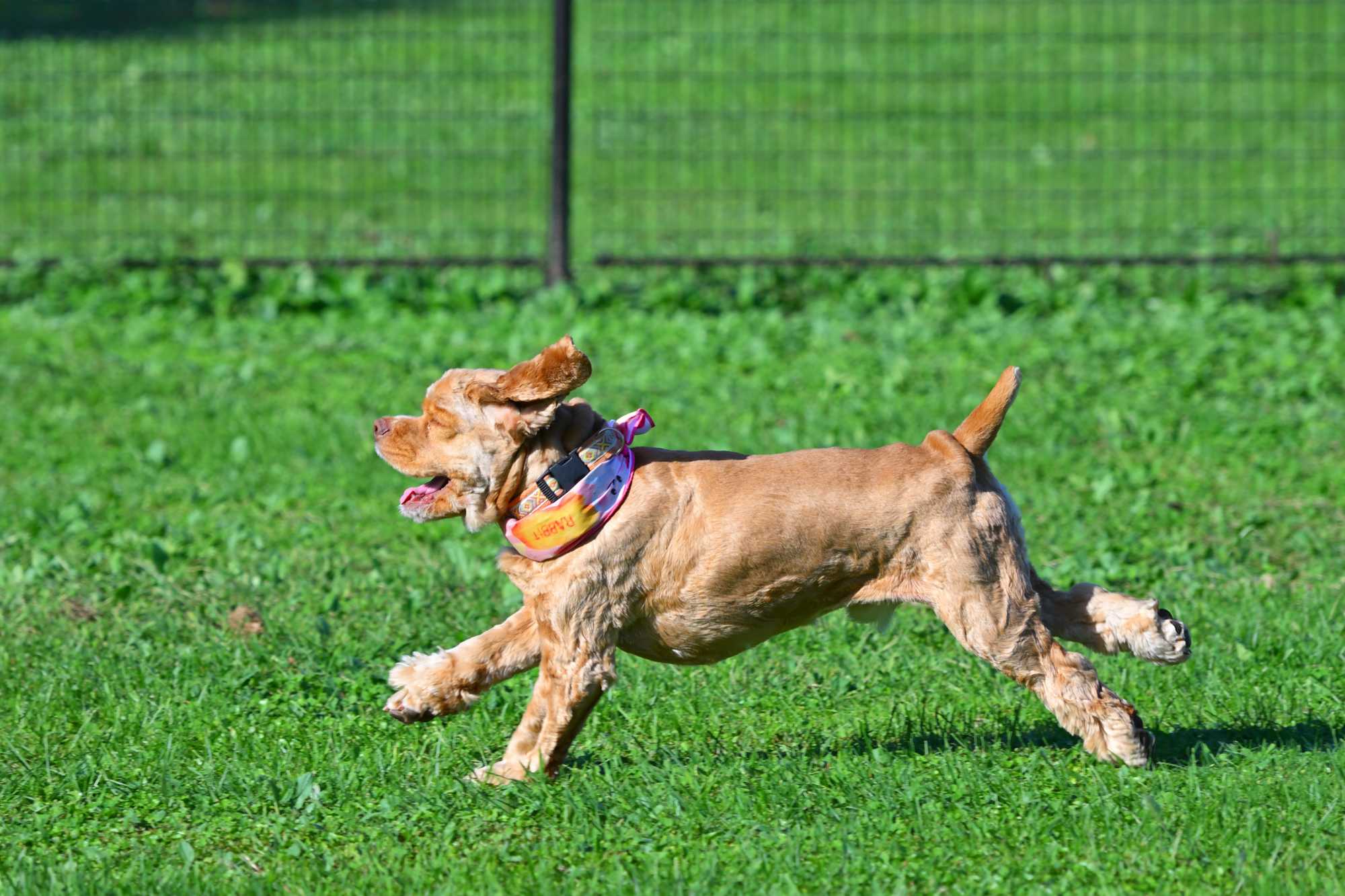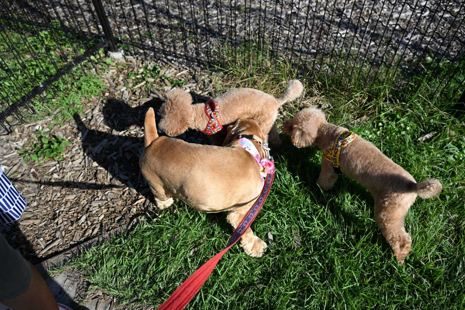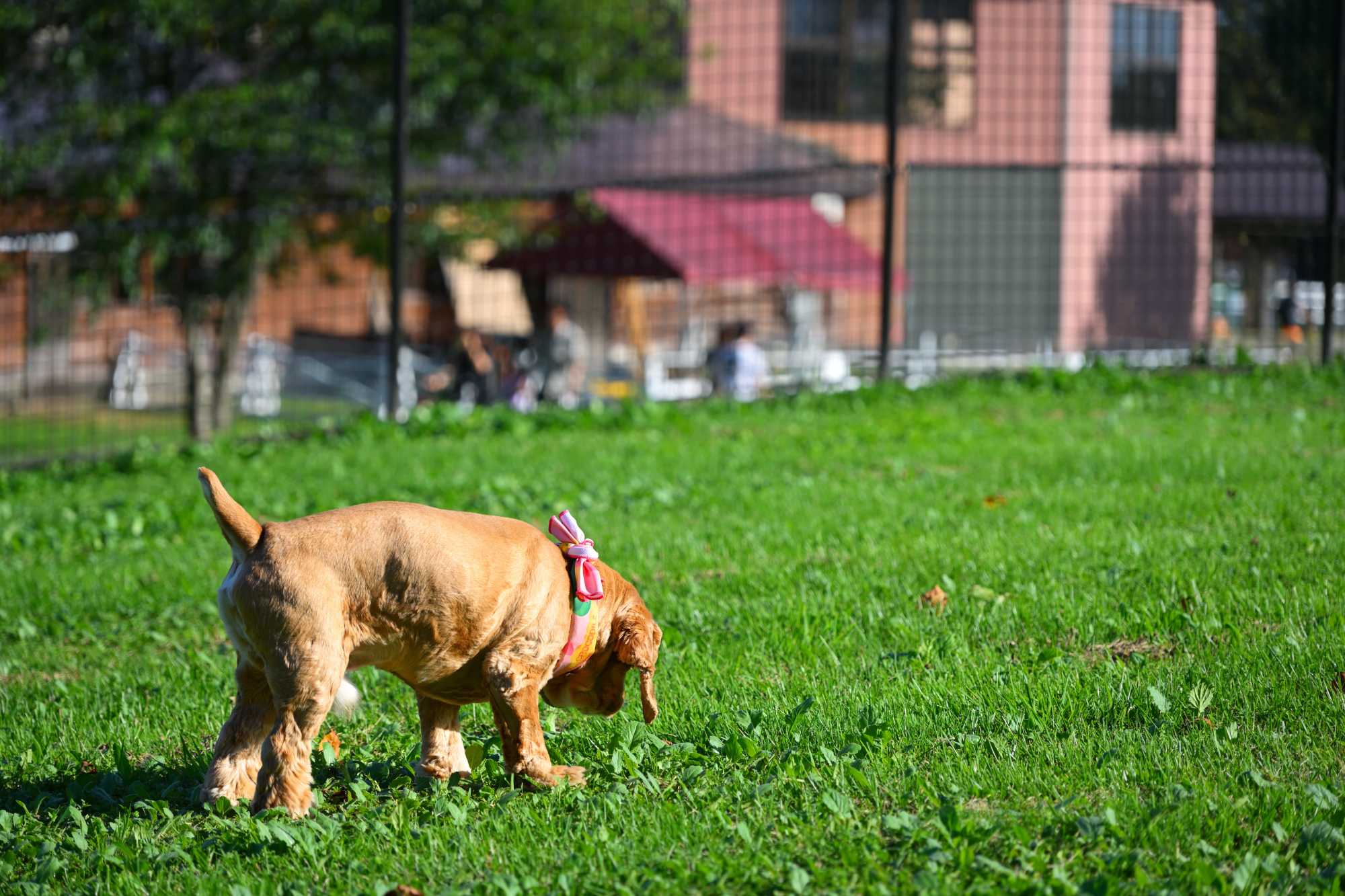 広い広場を突っ切るようにドッグランへまっしぐらのジュリオ。