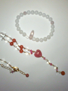 ミクシィで知り合った方に、オーダーメイドで、インカローズのネックレスを作ってもらいました写真を撮るのが下なんですが、実際は凄くおしゃれで綺麗ですこれはY字型ネックレスと、ホワイトジェイド&ローズクオーツの勾玉ブレスあれこれ注文しても、嫌な顔一つせず、(と言ってもお顔は見ていませんが^^;)快く、私好みに丁寧に仕上げてくれました こちらもネックレスですが、今度は希望のさざれを入れてもらいましたちょっと長めにしてもらいましたちょうど胸腺のあたりに届く感じですとなりは、カーネリアンのピアスですこれだけ沢山のストーンを使っているにもかかわらず、お値段もお買い得価格でしたインカローズが前から大好きだったのですが、アクセサリーはピアスしか持っていなくて、 やはりインカローズは可愛いです胸のチャクラにいいそうですそれにしても、パワーストーンは、後から後からほしくなりますね~