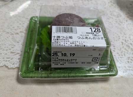 「十勝のつぶ姫 つぶあんおはぎ」。一個128円でした。