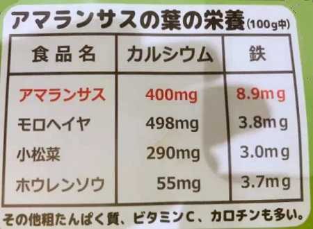 アマランサス自体がスーパーフードですが、葉っぱももちろん栄養豊富で特に鉄分やカルシウムなどが豊富に含まれているそうです。
