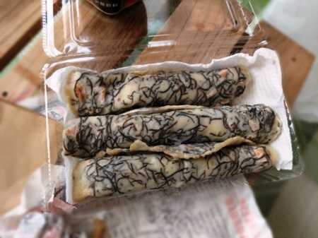 少し前に「もずくひらやーち」を紹介しましたが今回は「ぽーぽー」です。似ていますが違います(笑)。案外、ウチナーンチュでもこんがらがうかも知れません?「ひらやーち」を簡単に復習説明します。生地の中に、ニラ、ネギ、ツナ、もずくなどの具材を混ぜ込んで焼くのが定番です。お好み焼きやチヂミのように平らな円形で、ソースや醤油、ポン酢などをつけて食べる沖縄風のお好み焼きやチヂミです。今回の「ぽーぽー(ポーポー)」は、中国から伝来した食べ物の名が由来とされる。生地を焼き、中には具材を塗って巻く。一般的にはあんだんすー(油味噌)が多いです。クレープのように筒状に巻きます。沖縄風のクレープ。日本の村の中で最も人口が多い自治体として知られる読谷村(よみたんそん)の「楚辺ぽーぽー」は有名です。日本のクレープやホットケーキよりも少し厚みがあることが多いです。写真の「ぽーぽー」は、具材があんだんすーでなく、アレンジされた紅芋が練り込まれていました。ぽーぽーは、琉球王国時代に中国から伝わった「餑餑(ポーポー)」や「包子(ポーズ)」が元になっているという説があり、長い歴史を持つ琉球菓子の一つです。特に、旧暦の5月4日(本土の端午の節句に相当)に行われる「ユッカヌヒー」という子どもの成長を願う行事の際など、ごちそうの一つとして作られてきました。現在では、家庭料理としてだけでなく、沖縄のパーラーや道の駅、お菓子屋さんなどで軽食やおやつとして販売されている沖縄のソウルフードの一つです。ポチッと激励をお願いしますも何とか☆P~只今、ランキングに参加中ポチっとupupクリックお願いしますy(^。^)。o0○。