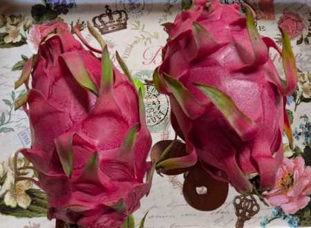 ドラゴンフルーツです。店で買って食した事はないので値段は分かりません。毎回、庭で採れたので食べる?と連絡があり、差入してくれます。今回も2個頂きました。ドラゴンフルーツはサボテン科の果実で、果皮が龍の鱗(うろこ)のように見えることが名前の由来のようです。メキシコや中南米が原産ですが、日本では主に沖縄県などで栽培されているそうです。農場で見たことはなく知人や親戚の庭で手入れされる事なく実っているのを普通に見ます。ドラゴンフルーツはカロリーが低く、健康に良い栄養素を豊富に含む「スーパーフード」としても知られています。効能を調べてみました。骨の強化、精神の安定、ストレス軽減など、果物の中でもトップクラスのマグネシウム含んでいる。食物繊維は、バナナの約2倍とも言われ、便通の改善、整腸作用、血糖値の上昇を抑える効果が期待できる。カリウムも豊富、体内の余分な塩分を排出する働きがあり、むくみや高血圧の予防に役立つ。その他、色々な効用が書かれ、医者いらずなフルーツだな、と今更思いました。一個、二個では効果は分からないと思いながら真っ二つに切ってスプーンで食べました。甘かったです。ポチッと激励をお願いしますも何とか☆P~只今、ランキングに参加中ポチっとupupクリックお願いしますy(^。^)。o0○。