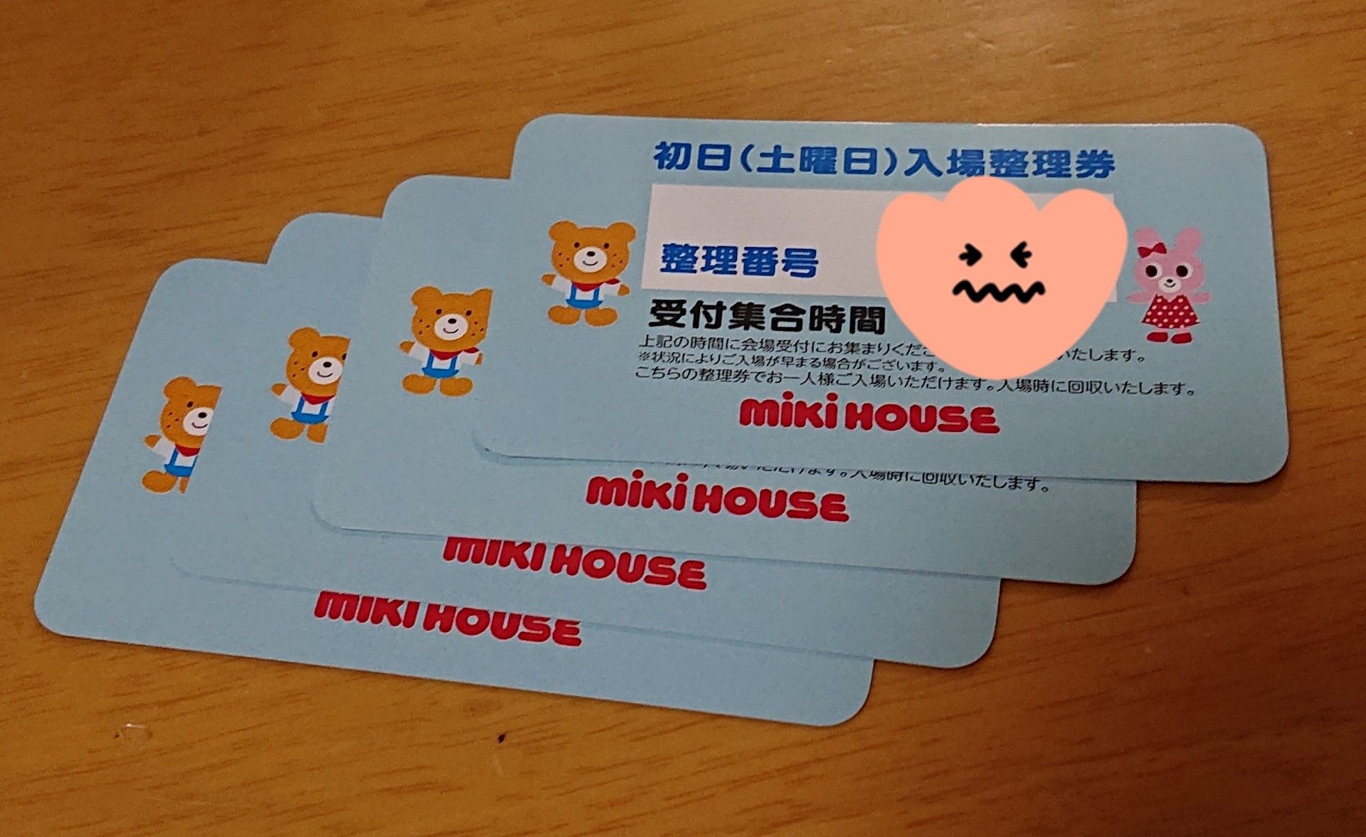 7/11(土)、ミキハウスランド大阪に行きました😄 今回は従来とは異なりステージショーなどイベントはなし。 混雑時は整理券対応。 会場はこれまで大阪城ホール→今回インテックス大阪に。 といったことが変更点でしたね。 子供達の預け先もないので、行くかどうか、行ってもゆるく…と思っていたのですが💦 まず、今回の大きなポイントとして。 我が家は城ホより、インテックスの方が家から圧倒的に近いんです!! 車だと8分くらい!?(ちなみに城ホは車でも20分はかかる) 前日の7/10(金)17:00に抽選配布する、7/11(土)の初回入場分の整理券。 夕方のバタバタする時間帯に、果たして貰いに行けるのか… どうしたものかと思っていたら、当日お昼に夫から連絡があり夕方の整理券一緒に貰いに行こう! 明日(当日)も予定調整したから子供達見とくよ! とのこと✨✨ なんとーーー! ありがたやー😭 ありがとう!大好き♥️と、伝えておきました(笑) 並んでいる間は、夫と子供達は少し離れたところで待っていて貰いました。 17時に並んでいる方で、抽選という形で中身が隠されている整理券を箱から一つずつ取っていきます。 いざ! お?!おお?? これ、結構いいんじゃない?! 1組あたり4枚まとめて配布されるんです。 (つまり1グループの同行人数は最大4名) 1組目→番号1~4 2組目→番号5~8 といった具合です。 ということは、これは9組目?! え?本当に?! 9組目の入場なんて、従来方式なら徹夜で並ばないとキープできないポジションですよね…。 ここで一気にやる気スイッチが入る母(笑) あれ?9:00集合? 10:00オープンだと思ってたよ! 9時て早っ!いや、いい。 何より近いし、頑張れる。行ける時間だ。 🌃→🌅 俄然やる気に満ち溢れた翌朝☀️ 9:00に集合して受付をして。 30分前倒しで、9:30に開場しますとのアナウンスが。 整理券1の番号の方から順に入場していきます。 やっぱり、かなり早い段階で入場させて頂けました😄 今回のお目当ては、今季秋冬物。 姉妹ズの80と100の秋冬物は必須!! あと90は長女なら今すぐ着られるし、来年なら次女がいけるので良さそうなのがあれば。 大きいサイズからなくなるのは分かっていたので、入ってすぐ100のB級品ワゴンへまっしぐら! その後、80と100のワゴンを10往復以上しながら、90のワゴンもチラ見して。 そしてサンプル品のワゴンと、絵本コーナーも回って、会計を済まして会場を後にしたときは12:00でした。 2時間半の滞在です。 時間が無限にあるなら一日中いられますが(笑)、子供達を託している手前、午前中で切り上げることにしました。 それでは、戦利品の公開です! 今回購入したものは、オールB級品です。 多いので、小分けにします。 以下、番号順に、ブランド、サイズ、定価(税込)→購入額(税込)、と記載していきます。 1.ダブルB サイズなし 3850円→1320円 (バスタオル) 2.ダブルB 80 6050円→2200円 3.ダブルB 100 6380円→2750円 4.ミキハウス 80 7150円→2750円 5.ミキハウス 100 7480円→3300円 6.ミキハウス 100 13200円→6600円 7.ミキハウス 80 9350円→3300円 8.ホットビ 80 2090円→770円 9.ホットビ 100 3520円→1650円 10.ホットビ 80 3190円→1100円 11.ホットビ 80 2530円→990円 12.ホットビ 90 2090円→990円 13.エブミキ 80 3850円→1100円 14.ホットビ 80(肌着) 1980円→770円 ↑11はタグの定価のところがちぎられていて、定価不明。 残ったタグの余白に手書きで「¥2300」と書かれていたので、これを税抜き定価とみなし、税込2530円と判断しました。 それから絵本もあります。 15.おしゃれセット 3850円→700円 16.わたしのきせかえセット 1650円→500円 17.ゆうえんち 1870円→700円 18.はじめてのドレミ 1738円→700円 19.メロディうさぎちゃん 1650円→300円 以上19点、合計税込32490円から500円引きクーポン使用で、 31990円のお支払でした。 当初の予算が3万円程度だったので、予算内ですね!!(←え) どれも凄く嬉しかったんですが、一番嬉しかったのはダブルBのサスペンダープリントのロンTを姉妹お揃いで買えたこと。 めっちゃ可愛いですよねー♥️ 眺めているだけで幸せです(^_^) 2と3、4と5は姉妹お揃いです。 6、8、9は、姉妹の今回買えなかった方のサイズを楽天などで手配中のため、お揃いになる予定です。 あとは、やや80の次女サイズ多めですが、長女は土日しか私服着ないし、10~13の服はほぼ1000円程度のものばかりなので、買いすぎたとは思っていません(笑)😄 当初は行くかどうかすら悩んでいたのに、気がつけば両手いっぱいの荷物で帰宅🏘️ 今回は整理券の番号がラッキーだったのと、夫に協力して貰って一人参加出来たのが大きかったです✨ もう2日経ちましたが、まだ購入したお洋服を広げて一人ニヤニヤしてます(笑) 秋になったら着せるのが楽しみですね😍 1. 【セール30%OFF】【メール便OK】【DOUBLE B ダブルビー】トロピカル柄♪キッズビーチタオル【ミキハウス 水着】 2.3. 【ポイント10倍】【ミキハウス】【SALE】【ダブルB】蝶ネクタイ&サスペンダープリントの長袖Tシャツ6100【3980円以上で送料無料(国内)】 4.5. [mikihouse][ミキハウス]