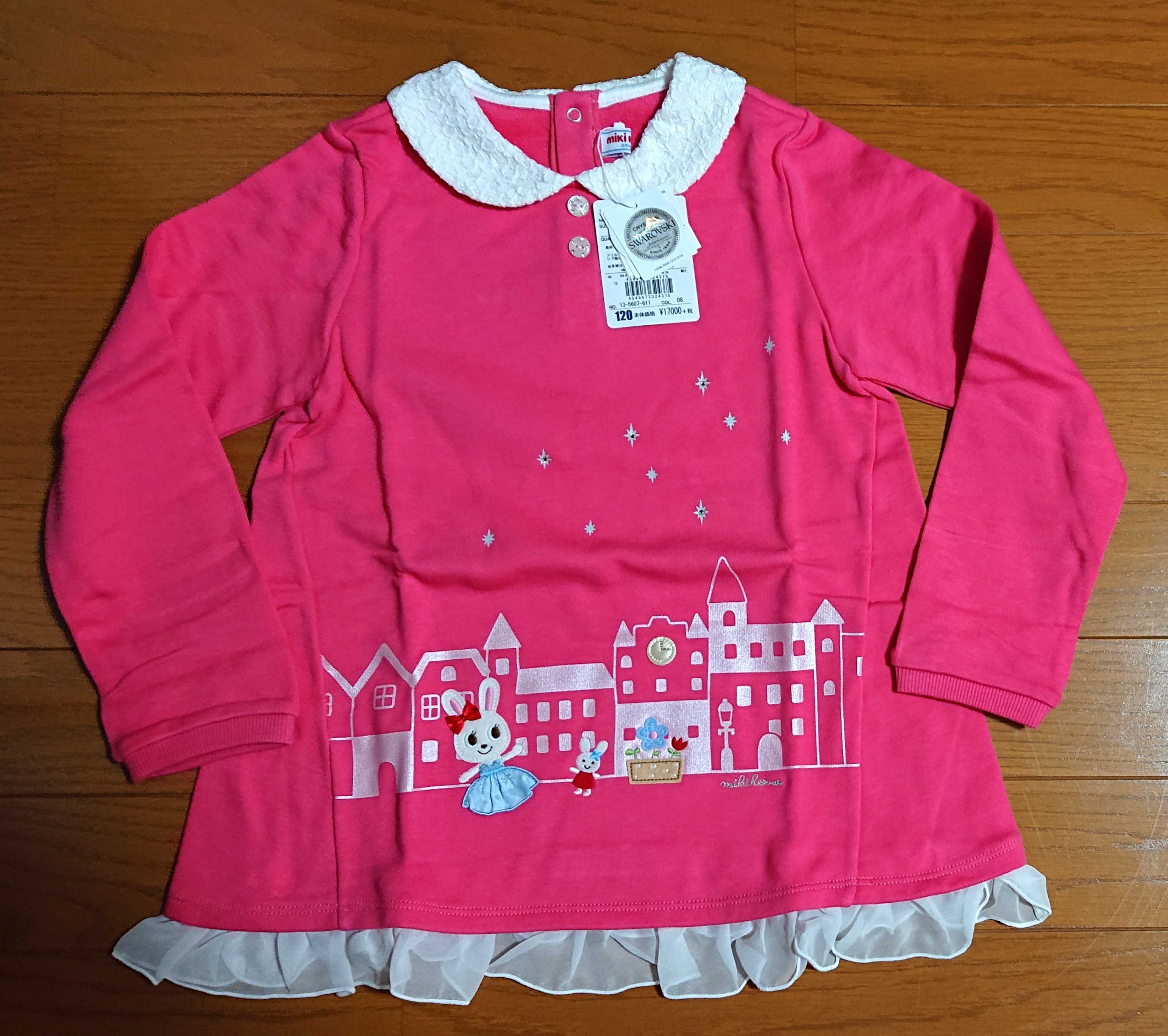 (限定セール定価17000円+税をSALE)ミキハウス(おすすめ)mikihouseシフォンフリル付きうさこトレーナー日本製(120cm)
