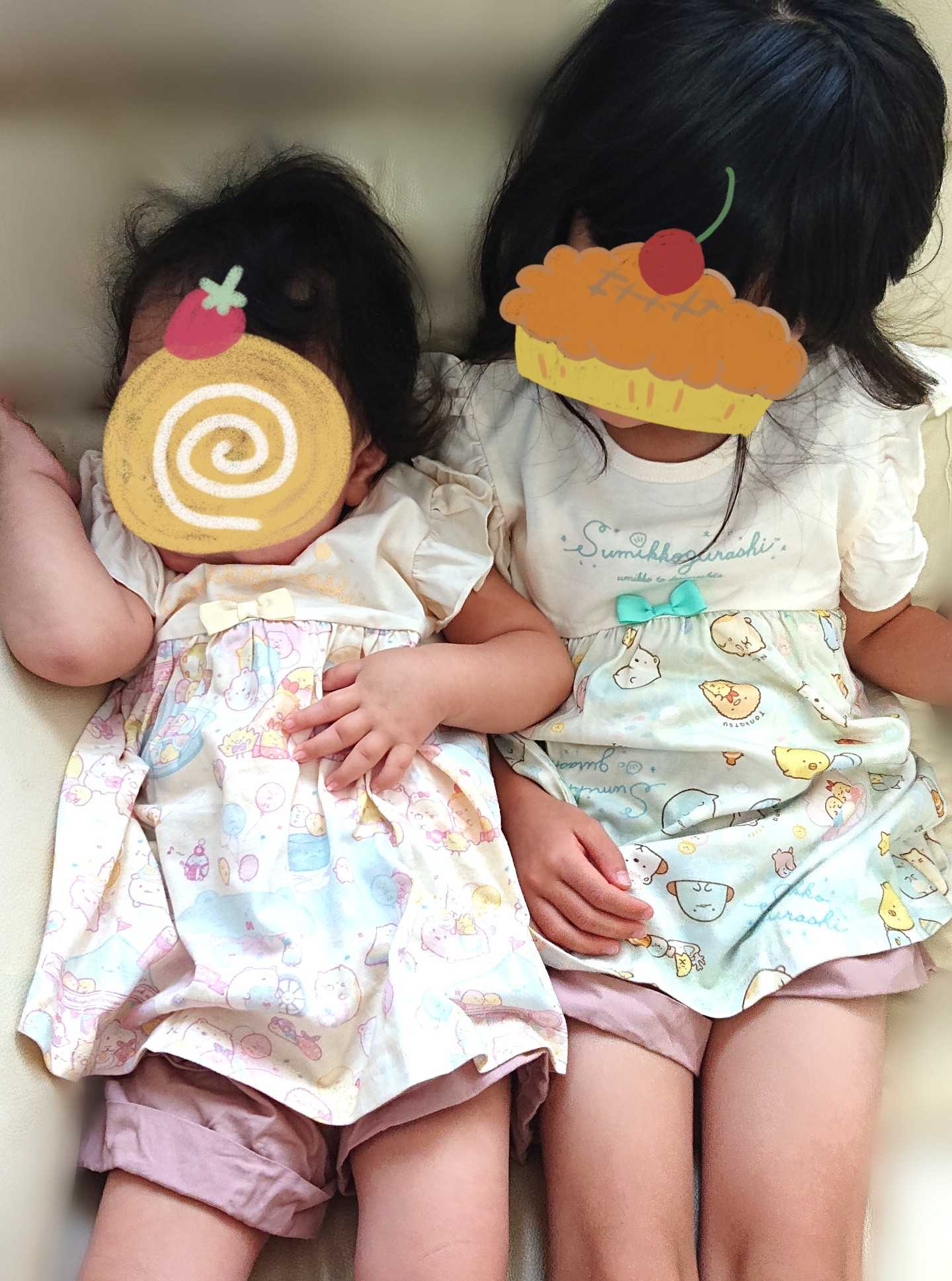 普段キャラクターモノのお洋服を着せないので、ほぼ初めて買ったキャラ服に大興奮の姉妹ズ。