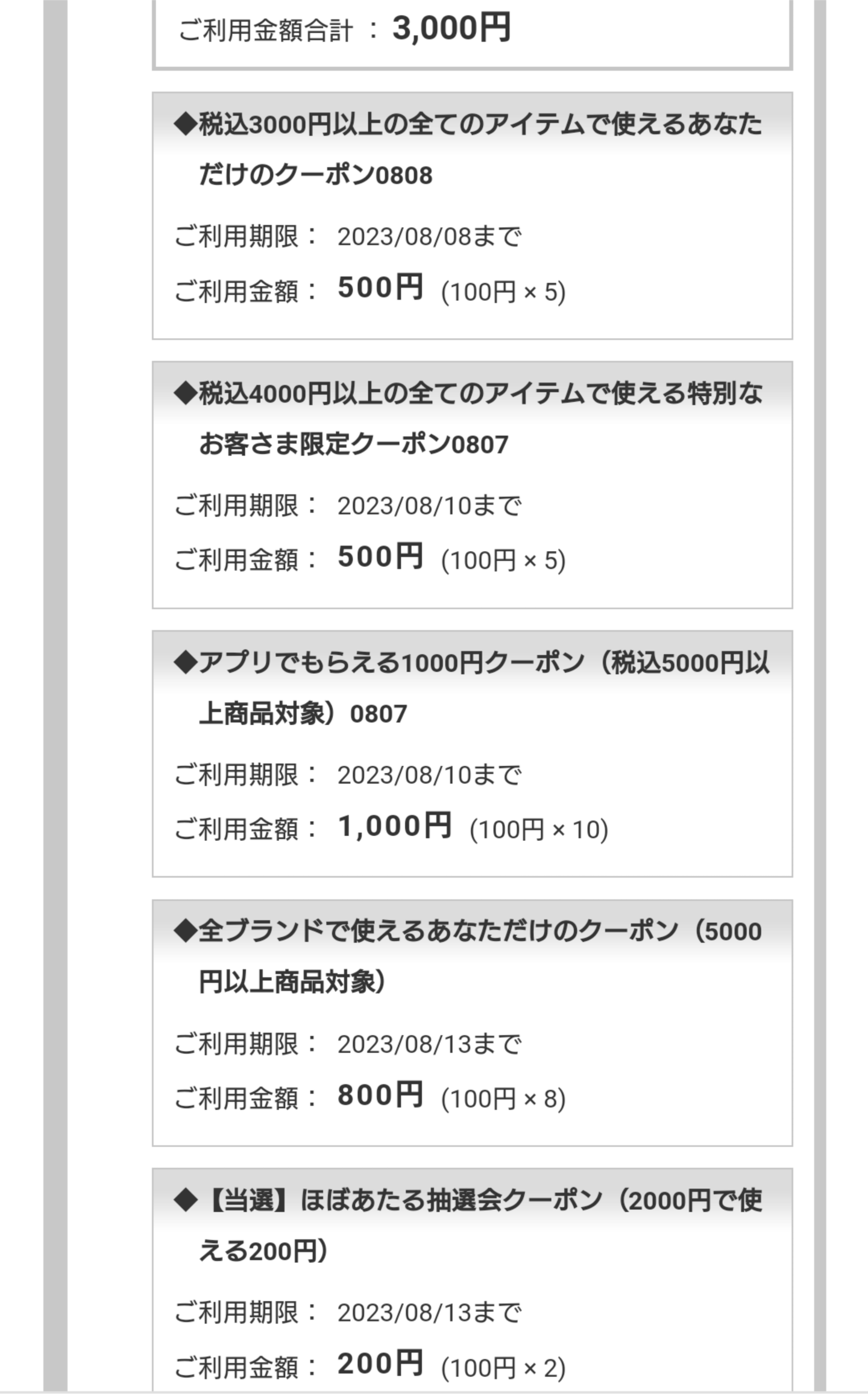 それ以外のクーポンは特別なのはなく、マ○イさんのアプリやウェブを見てたら普通に出てくるやつだと思います。