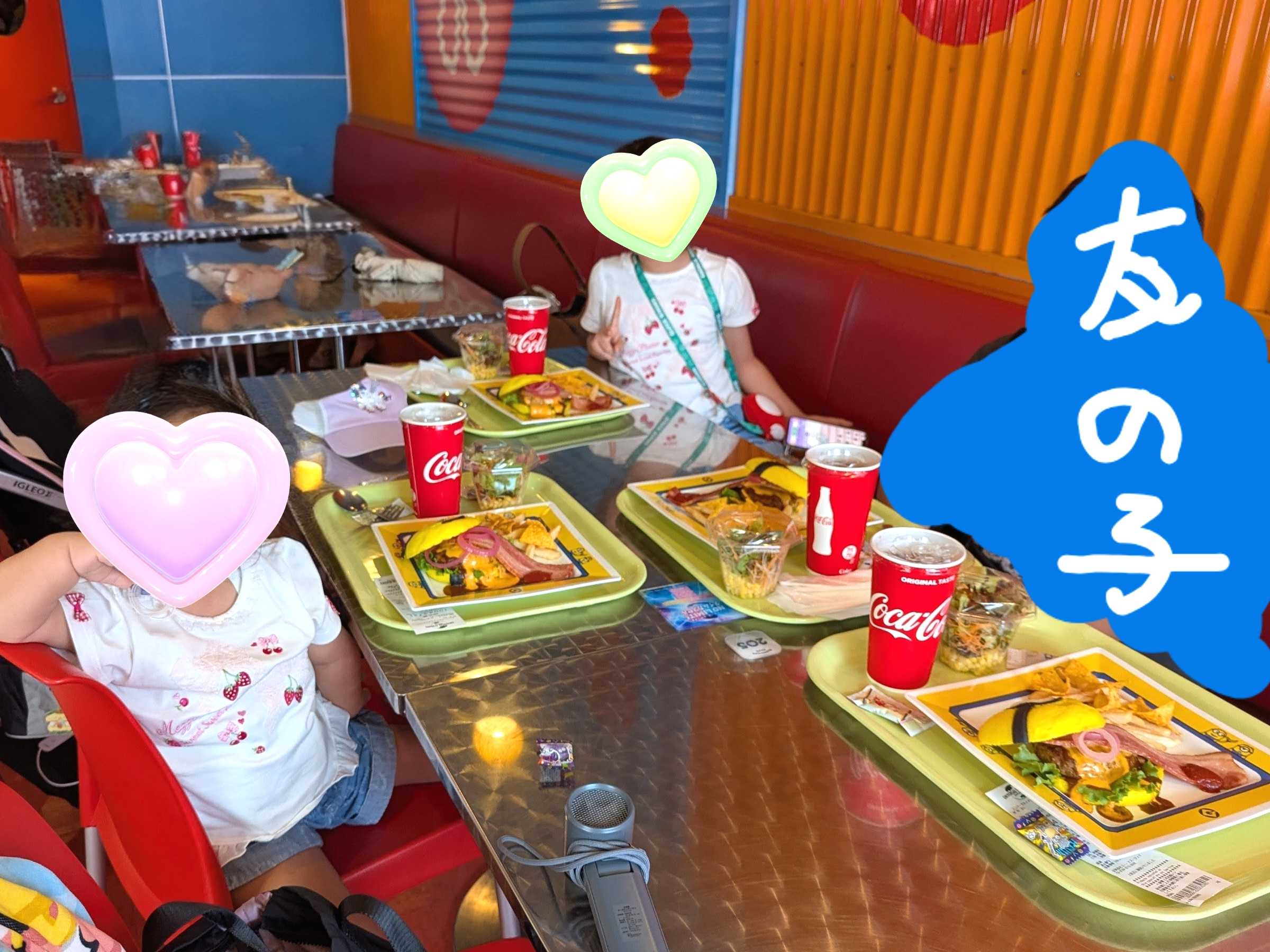 午前中で3アトラク乗ったあと、ハピネスカフェでランチ。