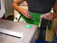 お盆休みも終わり、今日から又仕事です。でも、休み中も半分位は仕事で潰れましたが。それでも、何とか時間を作って身も心もオーバーホール出来たと思います。そう、いわゆる“命の洗濯”てやつが出来ました。しかし、それもつかの間。朝一番にお客様から電話が「すみません、受け取ったシャツに覚えの無いシミが・・・」私 「それではその品物を見せてください」見てみると、汗でハゲている様なのですが、理解してもらえません別にそのお客様は悪気があって言ってるのではないので当店のお家芸“色かけ修正”で直す事にして、納得していただきました。それが片付いたら、今度は休み中に直せなかった機械の修理の続き。機械屋さんに手伝ってもらいました。機械屋さんも悪戦苦闘この上コテは重いんです。一人じゃとっても無理。これも無事終了したら、衣服の修理やさんからTELが・・・請け負ってくれた、服の修理が出来なくなってしまって・・仕方ないのでお客様に説明して、何とか納得。やれやれ、そしてしみ抜きの仕事をしてたら、手作りのバレーのチュチュから、色がでたァ~!30分程過かってやんとか無事治りました。ハア、ハア、ハア(汗) 毎年ながら休み明けは仕事だけでなくトラブルまで溜まっちゃいますさあ、そんな仕事だけなら良いけれど、トラブルまで溜まっては、タ・マ・ラ・ナ・イ@て話はオイトイテ本日もマッタリとお読み下さい━─━─━─━─━─━─━─━─━─━─━─━─━─━─━─━─━─━ ☆★☆ あっちゃんの洗濯一口メモ ☆★☆ 【溜まった洗濯物は、もう一度シミのチェックをしましょう】 「以外にも気が付かなかったシミが見つかります」━─━─━─━─━─━─━─━─━─━─━─━─━─━─━─━─━─━■お盆休みも終わり案外、家庭の洗濯物やクリーニング屋さんに 出す洗濯物が山積みになって、溜まっていませんか? 脱いだ時は記憶があっても、3~4日経つと忘れたり 気が付かないシミが黄色くなって浮かび上がってきている■こんなケースって、良くある事なんです 特に飲料水やお茶は付いた時はさほど目立ちません。 しかし日数が経つと色が浮かび上がってくるんです。 それらを無造作に家庭で洗濯するだけでは落ちませんし■気が付かずにクリーニング屋さんに出して、品物が 手元に帰ってきた時、「あれ?こんなシミあったかな?」 「ひょっとしてクリーニング屋さんが付けたのかな?」 と、誤解するケースがあり、嫌な思いをする事があります■事前によーくチェックしておけば、そんなトラブルも 防げますし、シミの箇所を指摘しておくだけでも 取れる確率が高くなりますし。そして前にもお伝えしましたが そこでクリーニング屋さんをその気にさせる“魔法の言葉”です。■「ここは、他店で取れないシミを取ってくれるから」 こんな台詞を言われたら、鞭を打たれた最終コーナーを 周ったサラブレットの如く、必死コイテ励んでくれますゾ! そうやって上手に煽てて、使いましょう。■それでは今日はこの辺で ご機嫌麗しゅう