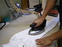 昨日は、日記の更新が出来ませんでした。機械の修理に戸惑って深夜1時過ぎまでかかりましたが今朝動かしてみたら、またしてもストライキ。やり直しです。というより、ここんとこ立て続けに3台故障です。もうタマリマセン!自分で出来るところまではやりましたが、後は手に負えません。機械屋さんを呼ぶことにします。それにしても蛇の脱皮事件以来、何故か機械の故障だらけです。さあ、そんな蛇に祟られる憶えは無い@てハナシはオイトイテ本日もマッタリとお読み下さい。━─━─━─━─━─━─━─━─━─━─━─━─━─━─━─━─━─━ ☆★☆ あっちゃんの洗濯一口メモ ☆★☆ 【皮革製品の意外なシワの伸ばし方】 「蒸気には弱いが、熱には結構、強いんです」━─━─━─━─━─━─━─━─━─━─━─━─━─━─━─━─━─━■チョット飛び飛びになりましたが 今日は皮革製品の家庭で出来る、 失敗しないシワの伸ばし方です。■その前に大事な事なので、お浚いです。 今日の対象は皮革製品です。 毛皮製品ではありません。 皮革製品とは?・・・動物の皮をなめした製品。牛革ジャン、バックスキン等 毛皮製品とは?・・・ファー等の毛が付いた製品。ミンク、チンチラ、フォックス等■先ず、今までの一般的な固定概念では 皮革製品は水に濡らしたらダメ、とか 熱に弱い、という考えの方が結構多い。■でも本当は水に濡れた位や、熱だけなら難でもありませんヨ。 水に濡れただけなら、自然乾燥すればOKです。 しかし、濡れた状態で熱乾燥はNGです。絶対に!!■それでは、シワを伸ばしたい時どうすれば良いか? あて布を皮のシワの部分の上に敷いて アイロンを高温にセットします。 ここで注意:決して皮に霧を振り掛けてはいけません。 完全に乾いた状態にして於いてください。 アイロンをゆっくりかけます。 ここでさらに注意:決して蒸気を出してはいけません。■要するに、革製品は熱や水分には弱くありません。 ただ、濡れた状態に熱が加わるとダメなんです!! 縮んでしまいます。■だから蒸気アイロンはNGなんです。 この事を念頭に入れてアイロンがけをすればOKです。 そこで今日のポイント。 ◎濡れがけ、蒸気、霧吹き後のアイロンがけは絶対しない。 ◎よく乾かしてから、あて布をして高温アイロンかけ! これで決まり!!!■それでは今日はこの辺で、ご機嫌麗しゅう