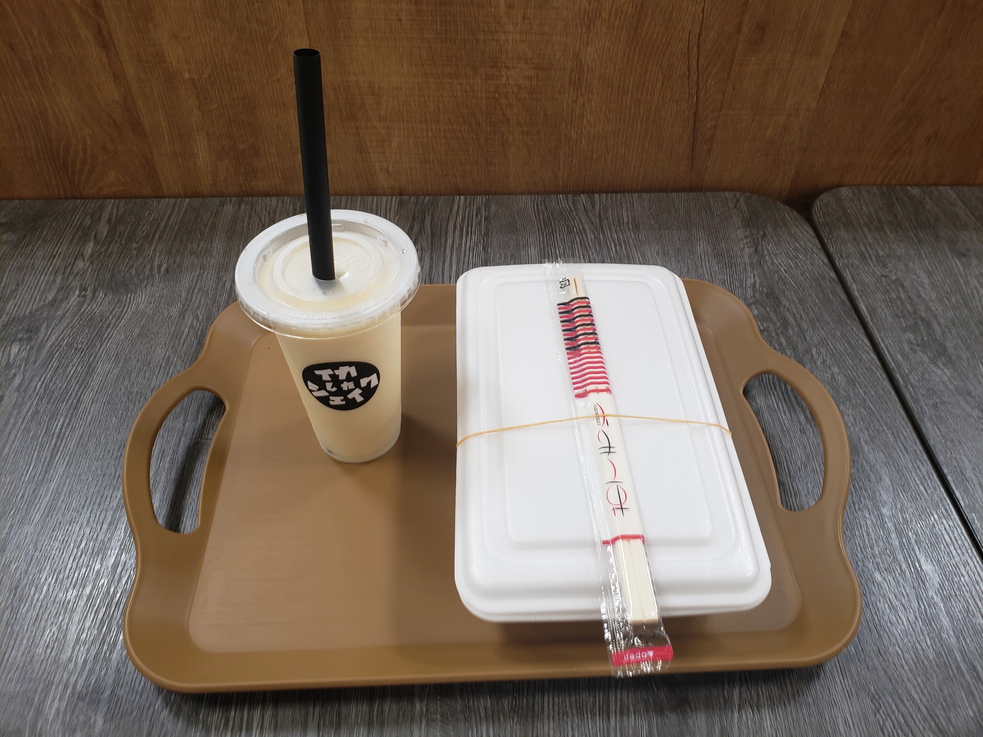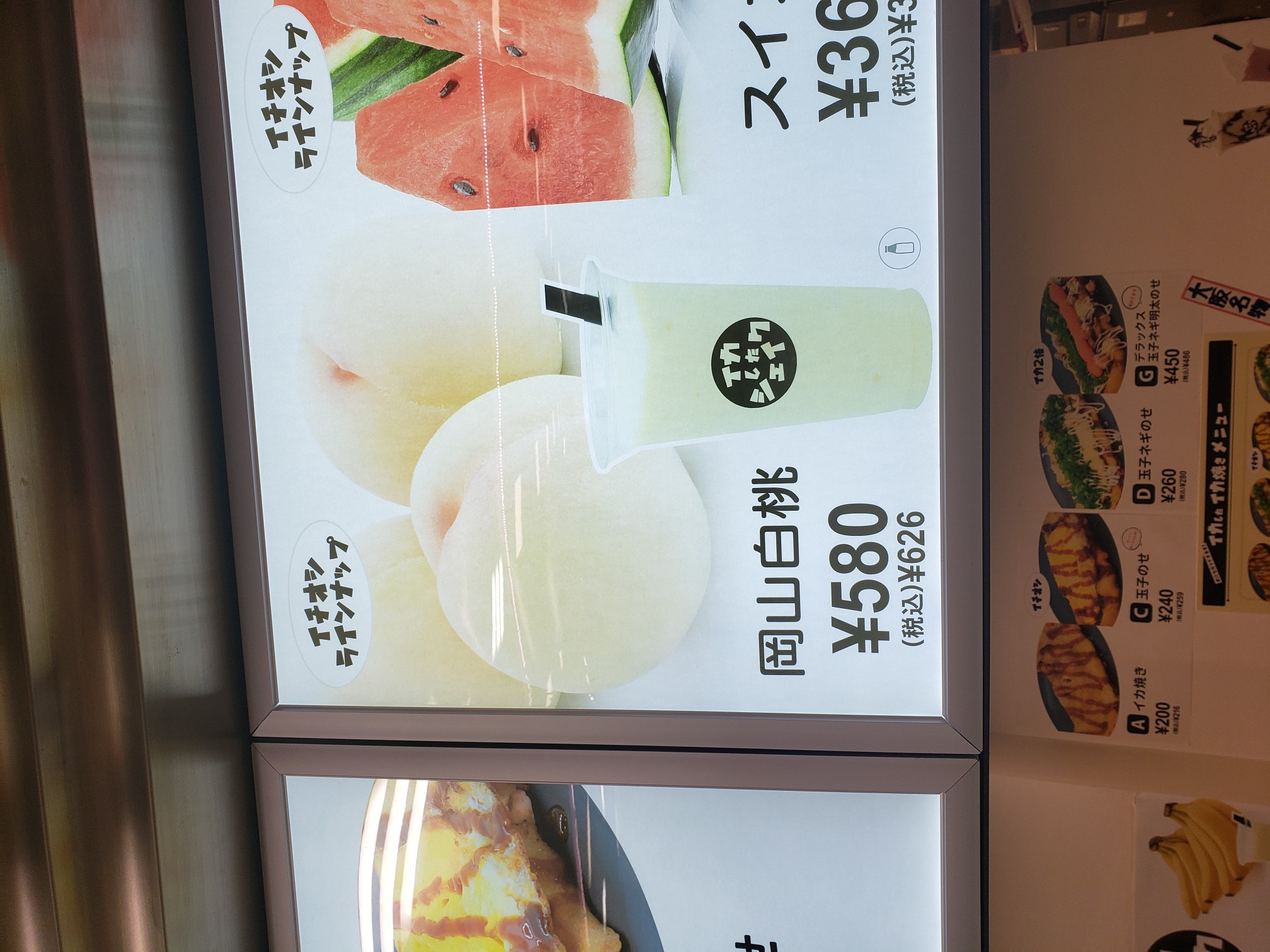 岡山白桃シェイクの入れ物が意外と小さいな。でも、なかなか濃厚で、白桃の旨みそのものが味わえる逸品、うんまい!!
