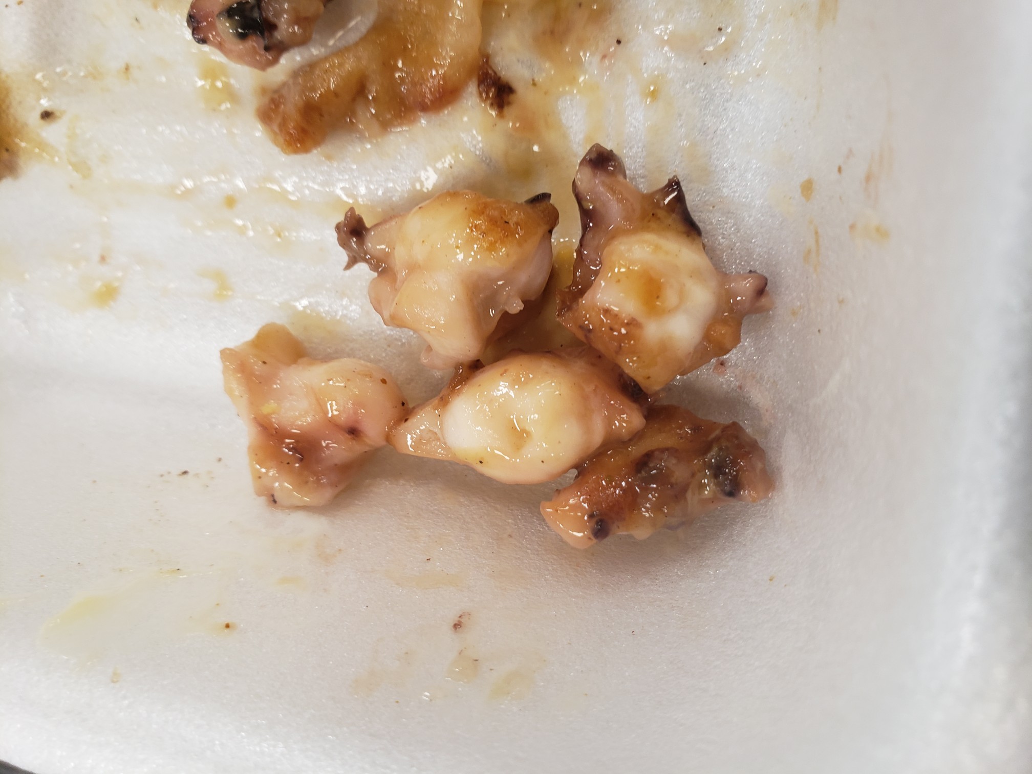 たこ焼きに入っているたこぐらいの大きさのイカが入っている。食感がいい。
