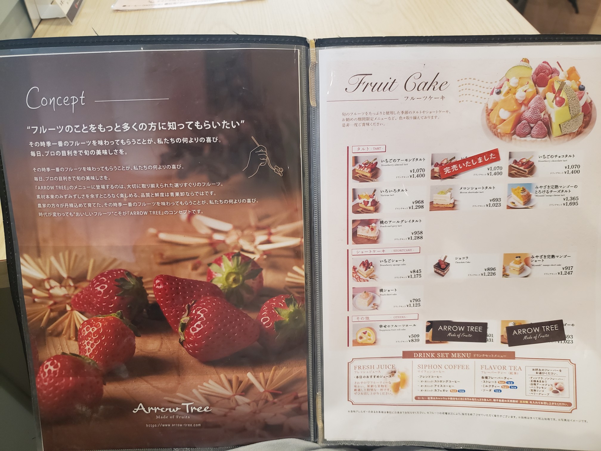 メニュー物色。ケーキはフルーツ系がメイン。