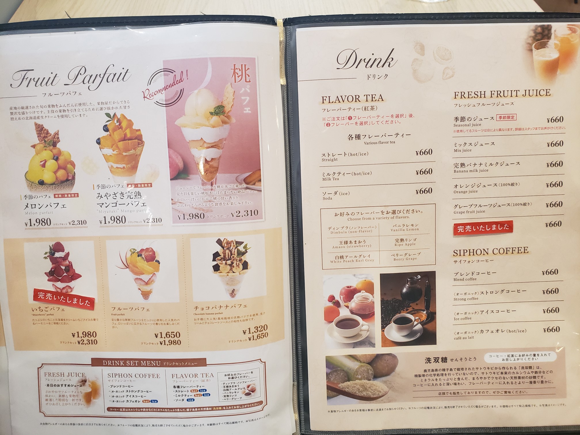 人気のパフェ類。どれもこれもうまそー!