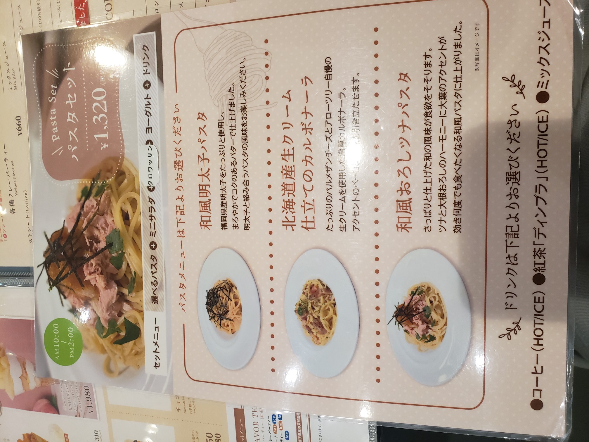 ランチはパスタセットが数種類。